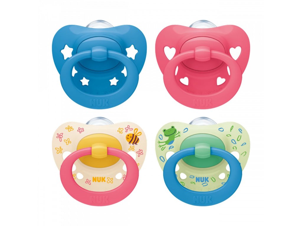 Ortodontický tvar podporuje vývoj celé ústní dutiny dítěte. Dudlík je vylepšený a má ještě plošší tvar. Je vyroben z vysoce kvalitního plastu a silikonového dudlíku. A nyní má tento široce oblíbený dudlík úžasný nový vzhled – oblíbený oblý tvar naústního štítu ve tvaru srdce a módní vylepšení roztomilého kroužku. Díky tomu bude malý obličejík vypadat ještě roztomileji. Každý nový dudlík NUK dodáváme v odolné, znovu použitelné krabičce, která dudlík udržuje čistý. Krabička je navíc vhodná pro hygienické čištění v mikrovlnné troubě. Náustní kryt a kroužek jsou vyrobeny z polypropylenu a neobsahují BPA.