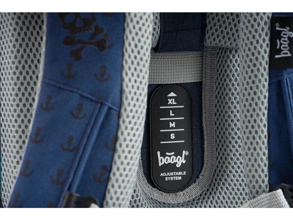 • Posuvný zádový systém BAAGL ADJUSTABLE SYSTEM umožňuje nastavení optimální polohy popruhů vzhledem k výšce dítěte.