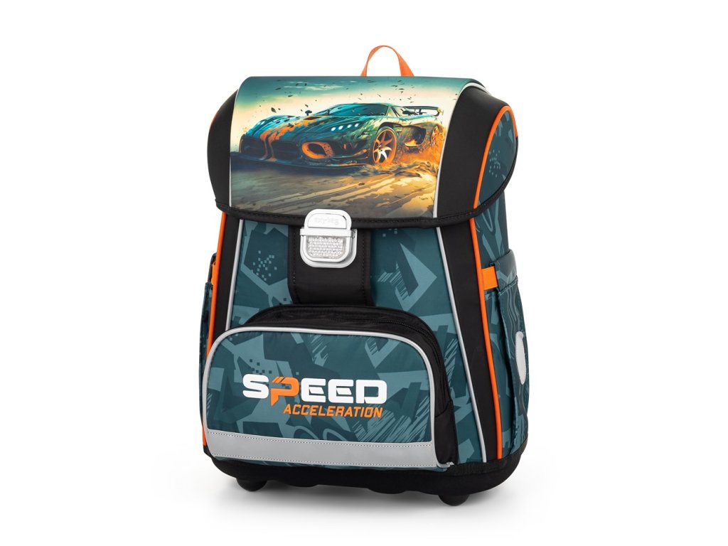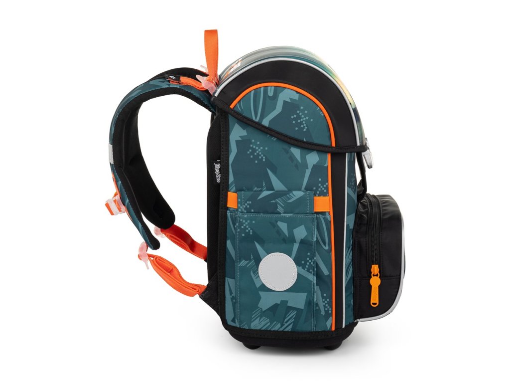 Školní aktovka z řady Premium je anatomicky tvarovaná a zajišťuje tak správné usazení na zádech. Vyztužená záda a vnitřní výztuha udržují stálý tvar batohu. Polstrování je z příjemného prodyšného materiálu, široké měkčené popruhy jsou navrženy tak, aby dokonale přilnuly a rovnoměrně zatížily ramena dítěte. Aktovka se skládá z jedné prostorné komory, kam se pohodlně vejdou všechny školní pomůcky pro děti v 1. a ve 2. třídě. Dno batohu je z pevného materiálu, chrání tím obsah před převržením a vysypáním. Zapínání je na bezpečnostní přezku. Přední kapsička je určena na svačinu, nechybí řada reflexních prvků, díky kterým je aktovka viditelnější.