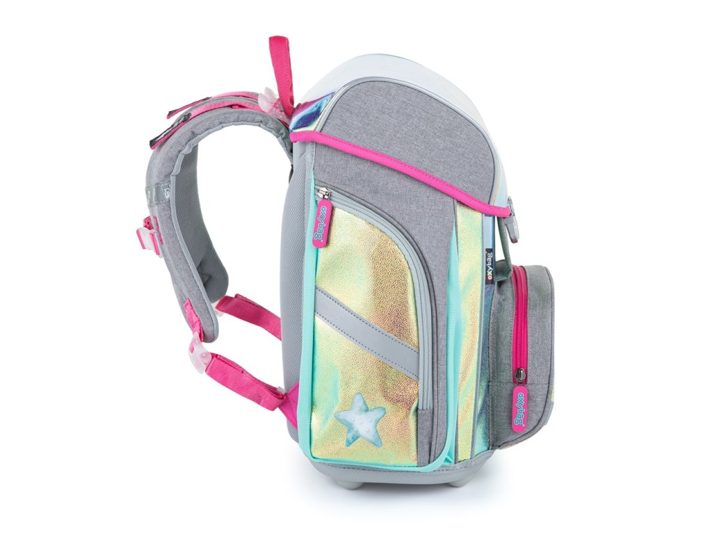 Školní aktovka z řady Premium s motivem víly je anatomicky tvarovaná a zajišťuje tak správné usazení na zádech. Vyztužená záda a vnitřní výztuha udržují stálý tvar batohu. Polstrování je z příjemného prodyšného materiálu, široké měkčené popruhy jsou navrženy tak, aby dokonale přilnuly a rovnoměrně zatížily ramena dítěte. Aktovka se skládá z jedné prostorné komory, kam se pohodlně vejdou všechny školní pomůcky pro děti v 1. a ve 2. třídě. Dno batohu je z pevného materiálu, chrání tím obsah před převržením a vysypáním. Zapínání je na bezpečnostní přezku. Přední kapsička je určena na svačinu, nechybí řada reflexních prvků, díky kterým je aktovka viditelnější.Doplňkové parametry