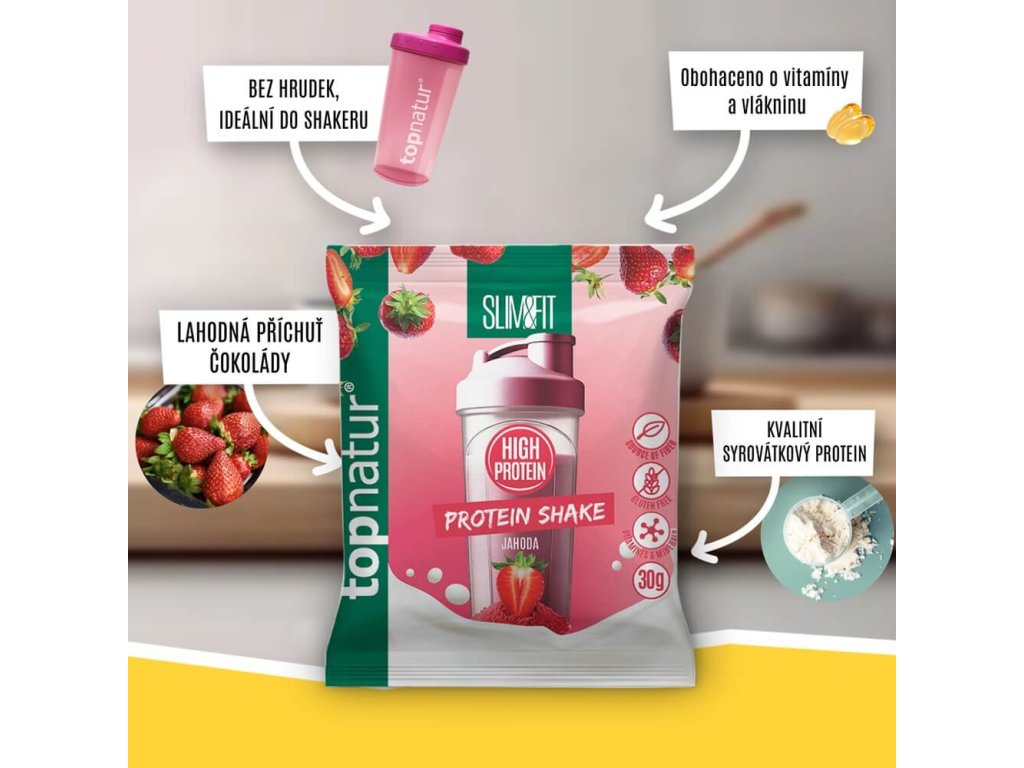 Slim&Fit Protein Shake Jahoda přináší svěží, výraznou chuť zralých jahod v lahodně krémovém provedení, které tě příjemně povzbudí kdykoli během dne.