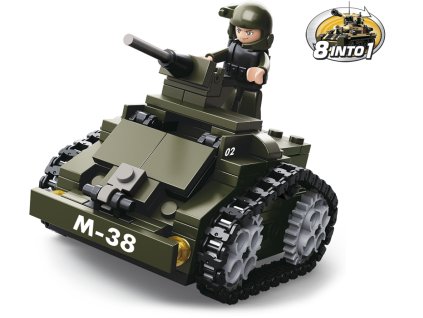 Ministavebnice vojenské techniky ze série Army 8into1, jejíž kompletací vznikne možnost sestavit velký ucelený model tanku, či obrněného vozidla. Inovativní stavebnice Sluban je možno kombinovat s podobnými stavebnicemi mnoha dalších významných výrobců. Jsou vyráběny z kvalitního, nezávadného a odolného ABS plastu. Každá stavebnice je opatřena návodem k sestavení a balena v pestře potištěné papírové krabičce. Hlavní vlastnosti:93 dílků, 1 figurkastřední obtížnostkompletací série lze sestavit velký modelinovativní figurky s otáčivými i výkyvnými částmi tělkompatibilní se stavebnicemi dalších výrobců