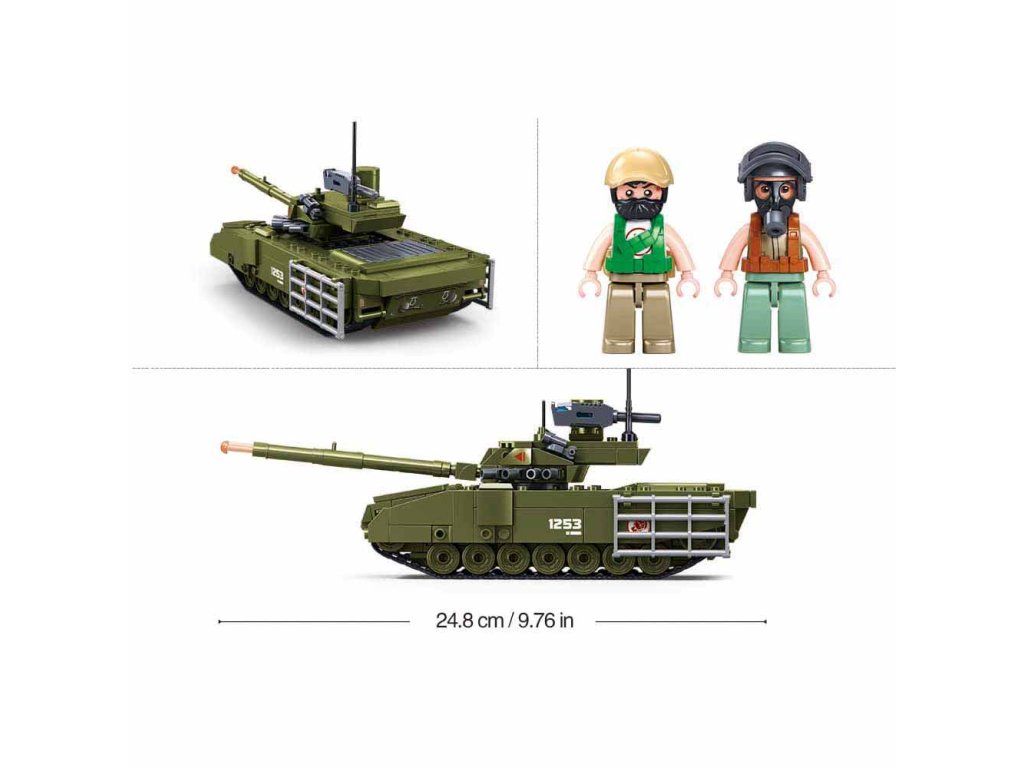 Rozměry balení: 42,5x28,5x6,7 cm Délka tanku: 18,2 cm Věk: 8+ Materiál: plast Počet figurek/dílků: 3/530 Měřítko: 1 : 35 Kompatibilní s Lego, Cobi, Mega Bloks