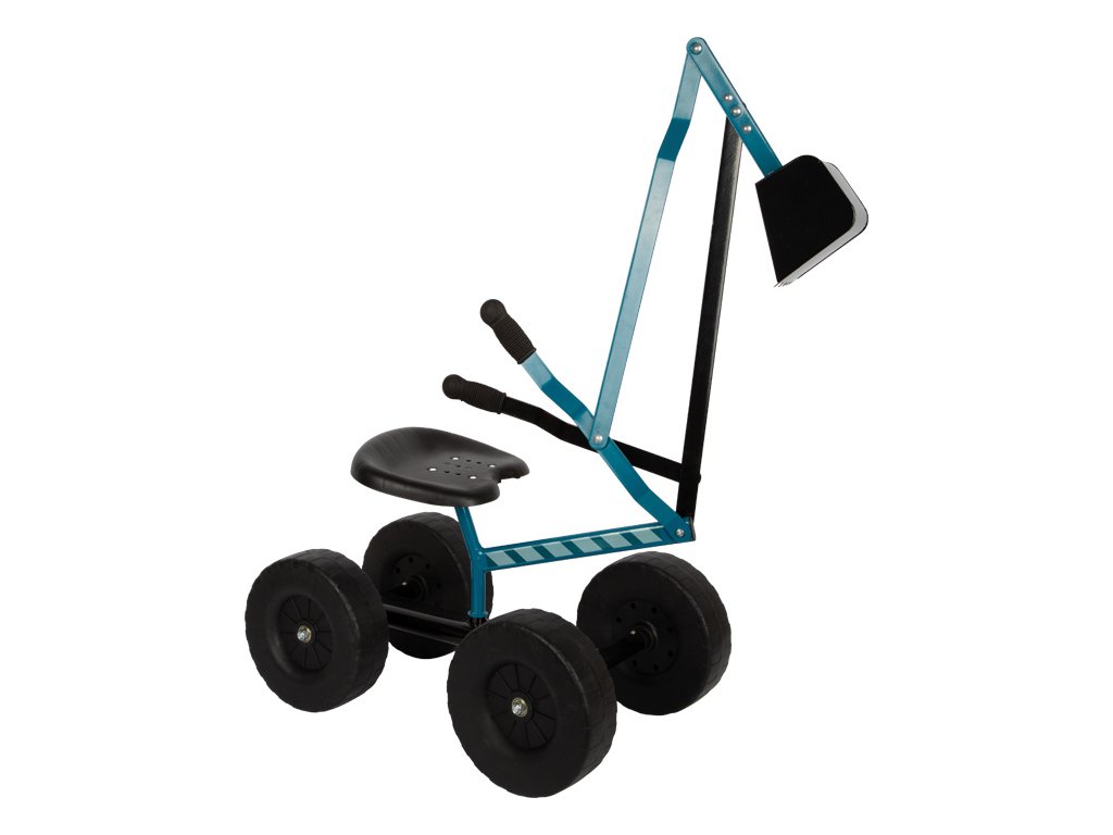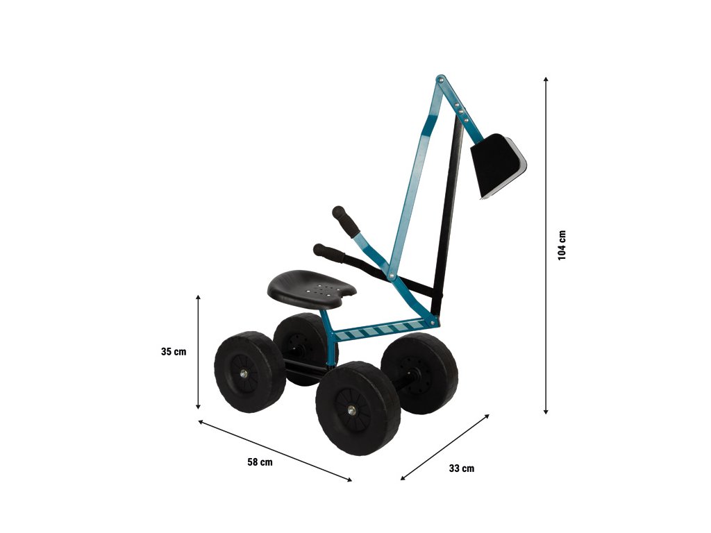 Dětský bagr s otočnou konstrukcí o 360° nabízí realistickou herní zábavu bez kompromisů. Robustní bagrová lžíce se ovládá pomocí dvou pák, které dětem umožňují snadno nabírat, zvedat a vyklápět písek i drobné poklady. Pevný kovový rám je navržen pro zatížení až 50 kg a doplněn pohodlným plastovým sedátkem. Díky velkým kolům o průměru 20 cm je bagr snadno pojízdný a děti s ním mohou samostatně manévrovat po pískovišti i zahradě. Bagr vnáší do hry autentickou atmosféru staveniště a motivuje děti k aktivní hře venku. Podporuje rozvoj hrubé motoriky, koordinace pohybů i prostorové představivosti a zároveň stimuluje kreativitu a fantazii. Ergonomicky tvarované rukojeti jsou přizpůsobené malým dětským rukám a usnadňují ovládání. Díky realistickým funkcím si malí stavebníci mohou hravě vyzkoušet kopání, zvedání i vyklápění téměř jako skuteční profesionálové. Hodiny zábavy na čerstvém vzduchu jsou zaručeny. Hlavní vlastnosti: konstrukce otočná o 360° pro maximální mobilitu pohyblivá lopata rýpadla, která se ovládá dvěma páčkami (funkce uchopení a vysypání)robustní kovový rám, nosnost až 50 kgergonomicky tvarované rukojetipodporuje motoricke dovednosti, koordinaci ruka-oko a povzbuzuje k hraníideální na zahradu a pískovištěvyrobeno v NěmeckuDoplňkové parametry