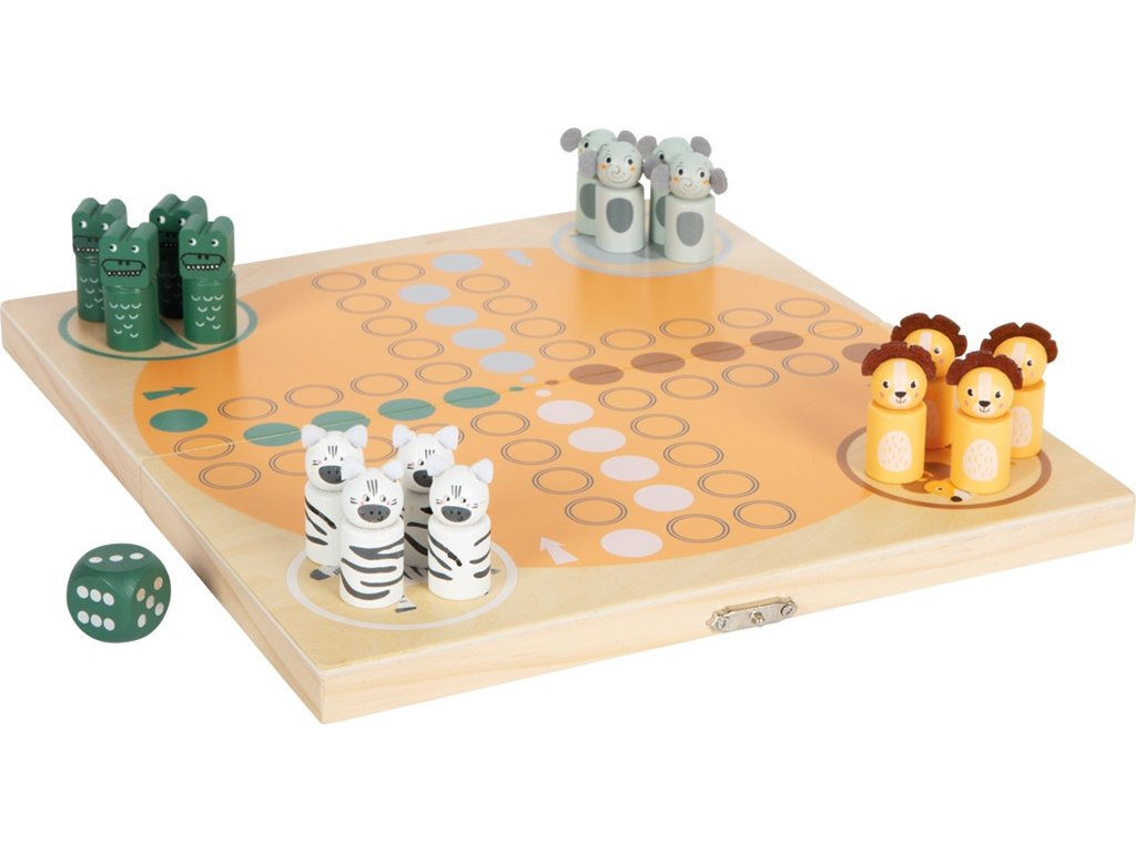 Klasická hra Člověče, nezlob se! s atraktivním motivem safari je vhodná pro všechny věkové kategorie a zapojí do hry celou rodinu. Tato nadčasová desková hra vhodná až pro čtyři hráče je ideální pro nácvik počítání s menšími dětmi a trénink jejich jemné motoriky při pohybu s figurkami. Figurky ve tvaru zebry, krokodýla, slona a lva jsou propracované do nejmenších detailů, jako jsou plstěné uši a plstěná hříva. Skládací herní deska je zároveň úložným boxem pro herní figurky a kostku, a díky tomu si hru můžete přibalit s sebou na cesty. Hra je vyrobena z odolného dřeva, má vysoce kvalitní potisk a moderní barevné provedení v kombinaci se vzhledem přírodního dřeva. Cílem hry je dostat všechny své figurky jako první do domečku. Hoďte kostkou, ať víte, o kolik políček se můžete posunout. Hlavní vlastnosti: klasická hra v zajímavém motivu safaribalení obsahuje 1 hrací desku sloužící jako úložný box, 16 figurek a 1 hrací kostkuvhodné na procvičování počítánítrénuje jemnou motorikuvhodné pro všechny věkové kategorieideální doplněk k dalším hračkám řady Safari Dokumentace: návod ke hře (DE, EN, FR, ES, IT)Doplňkové parametry