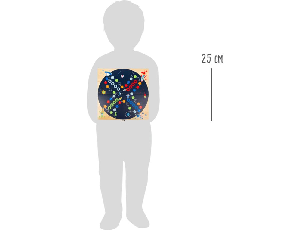 Vesmír na herní desce! S touto hrou „Člověče, nezlob se!“ se splní sny všech malých astronautů. Poletují zde rakety, mimozemšťané, kteří se snaží dostat zpět do domečku. Klasická hra Člověče, která má krásný design a 2 typy kostek, takže je vhodná i pro děti, které ještě neumí počítat. Kdo jako první dostane své figurky do domečku – pole s hvězdami – vyhrává. Herní deska má zámeček a tak je vhodná i na cesty. Hlavní vlastnosti: kompaktní balení vhodné i na cestyveselé postavičky a originální designeDoplňkové parametry