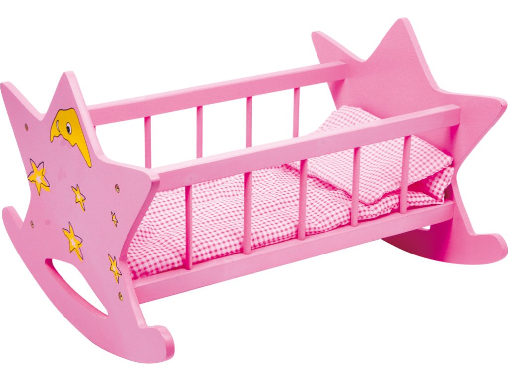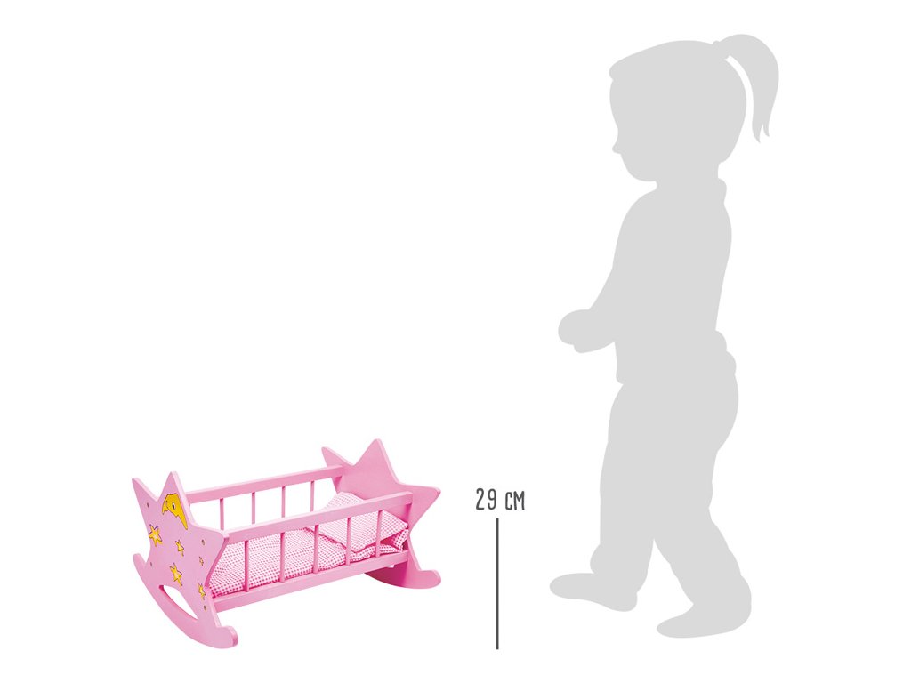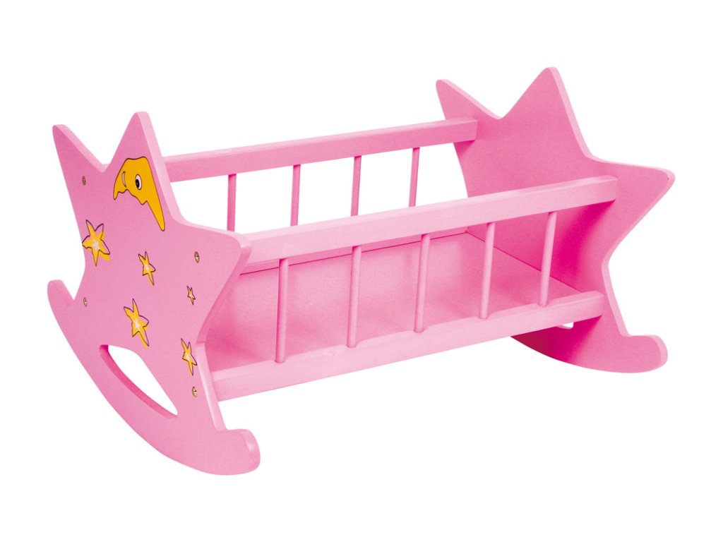 Pozor všichni pozorovatelé hvězd. S touto skvělou kolébkou pro panenky z robustního dřeva se děti s panenkami houpají do svých snů. Přední a zadní část kolébky má design hvězdné oblohy.