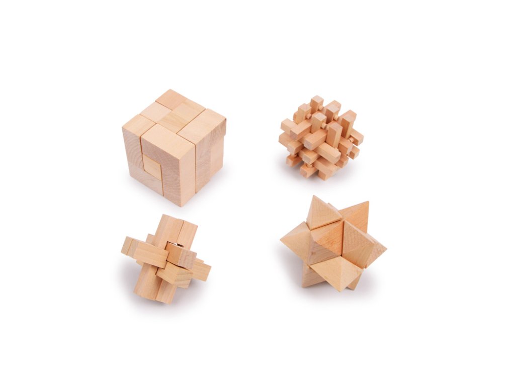 Zapeklitá situace! Tyto 4 dřevěné hlavolamy pro mladé i starší ruce opravdu zaměstnají mozek. Různé tvary z přírodního dřeva rozložte a poté se je snažte dát zpět dohromady. Musíte být zruční a soustředění. Kdo postaví hlavolam nejrychleji? Hlavní vlastnosti: rozvíjí logické myšlení dětítrénuje zručnost a soustředěnostpřírodní dřevoDoplňkové parametry