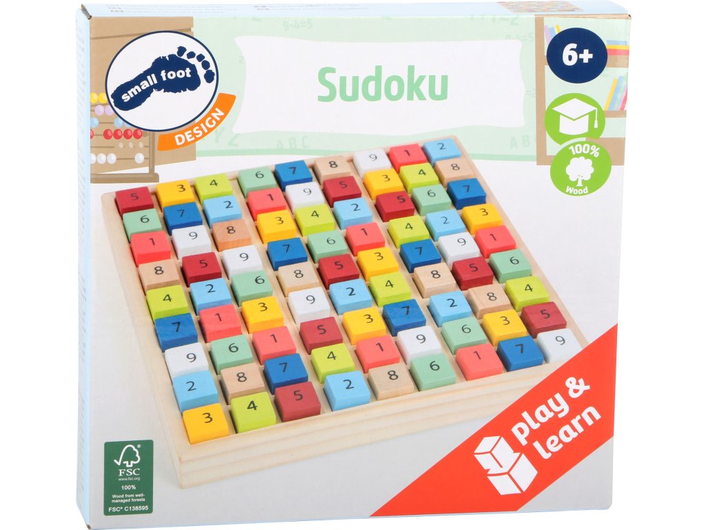 Kdo vyřeší hádanku nejrychleji? Světoznámá hra s čísly Sudoku je vyrobená ze 100% certifikovaného dřeva FSC®. Všechny barevné dřevěné kostky jsou uspořádány v dřevěnému rámu. Součástí je 40 předloh pro obtížnosti začátečník až expert. Tato logická hra pomáhá rozvíjet logické myšlení a soustředěnost dětí. Hlavní vlastnosti: atraktivní barevné provedení40 předloh pro obtížnosti začátečník až expert.pomáhá rozvíjet logické myšlení a soustředěnost dětírám zajištuje stabilitu Značka a certifikát FSC® (Forest Stewardship Council) zaručuje, že dřevo, ze kterého byl produkt vyroben, nebylo vytěženo nelegálně a pochází z lesů obhospodařovaných šetrným či přírodě blízkým způsobem, ve kterém jsou dodržovány přísné environmentální a sociální požadavky. Značka FSC® na výrobku znamená, že svým nákupem pomáháte chránit lesy a podporujete šetrné, odpovědné či přírodě blízké hospodaření, díky kterému jsou naše lesy stabilnější, zdravější, mají přirozenou druhovou skladbu a lépe odolávají negativním následkům klimatických změn.Doplňkové parametry
