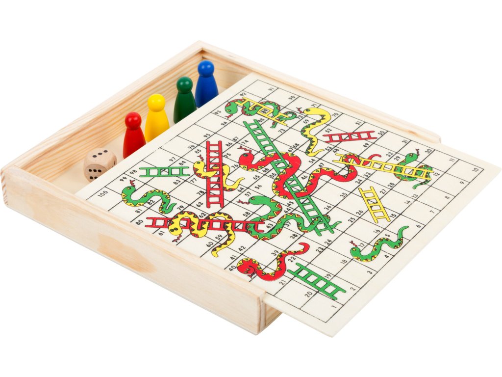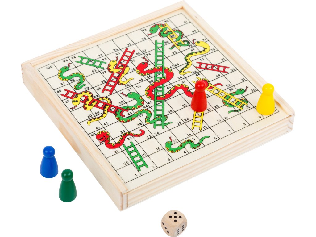 Čtyři hráči, kostka a hrací deska s hady a žebříky. Kdo se dostane z 1 na 100 nejrychleji? Tato kompaktní desková hra je vyrobená ze 100% FSC dřeva. Když stoupnete na políčko hada nebo žebříku stane se cesta do cíle delší nebo kratší. Tato desková hra je perfektní i na cesty. Dílky jsou bezpečně uloženy uvnitř krabice, která slouží jako hrací deska. Hlavní vlastnosti: 100% FSC dřevocestovní hratrénuje trpělivost Značka a certifikát FSC® (Forest Stewardship Council) zaručuje, že dřevo, ze kterého byl produkt vyroben, nebylo vytěženo nelegálně a pochází z lesů obhospodařovaných šetrným či přírodě blízkým způsobem, ve kterém jsou dodržovány přísné environmentální a sociální požadavky. Značka FSC® na výrobku znamená, že svým nákupem pomáháte chránit lesy a podporujete šetrné, odpovědné či přírodě blízké hospodaření, díky kterému jsou naše lesy stabilnější, zdravější, mají přirozenou druhovou skladbu a lépe odolávají negativním následkům klimatických změn.Doplňkové parametry