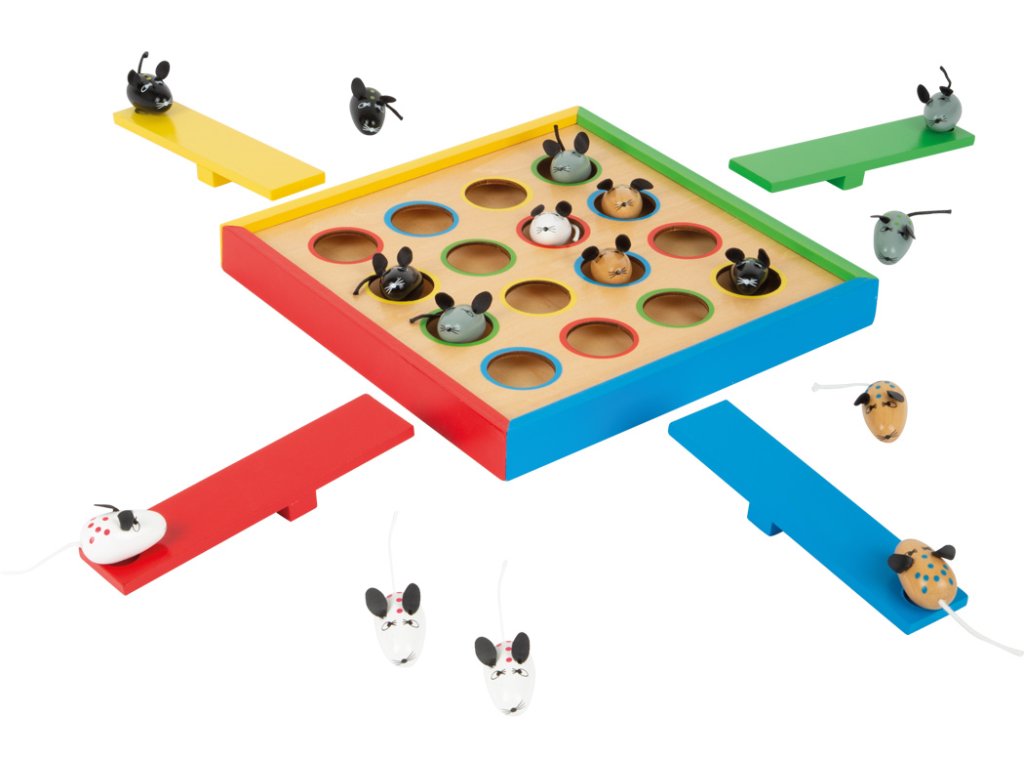 Zábavná hra na zručnost a trpělivost pro celou rodinu. 16 myšek a 4 houpačky, díky kterým myšky skáčou. Údery různou silou ovlivní, jak daleko myška doletí. Cílem hry je katapultovat figurky do barevně označených otvorů. Hlavní vlastnosti: trénuje koordinaci ruky a okapodporuje soustředění, zručnost a trpělivosthra pro 1-4 hráčeDoplňkové parametry