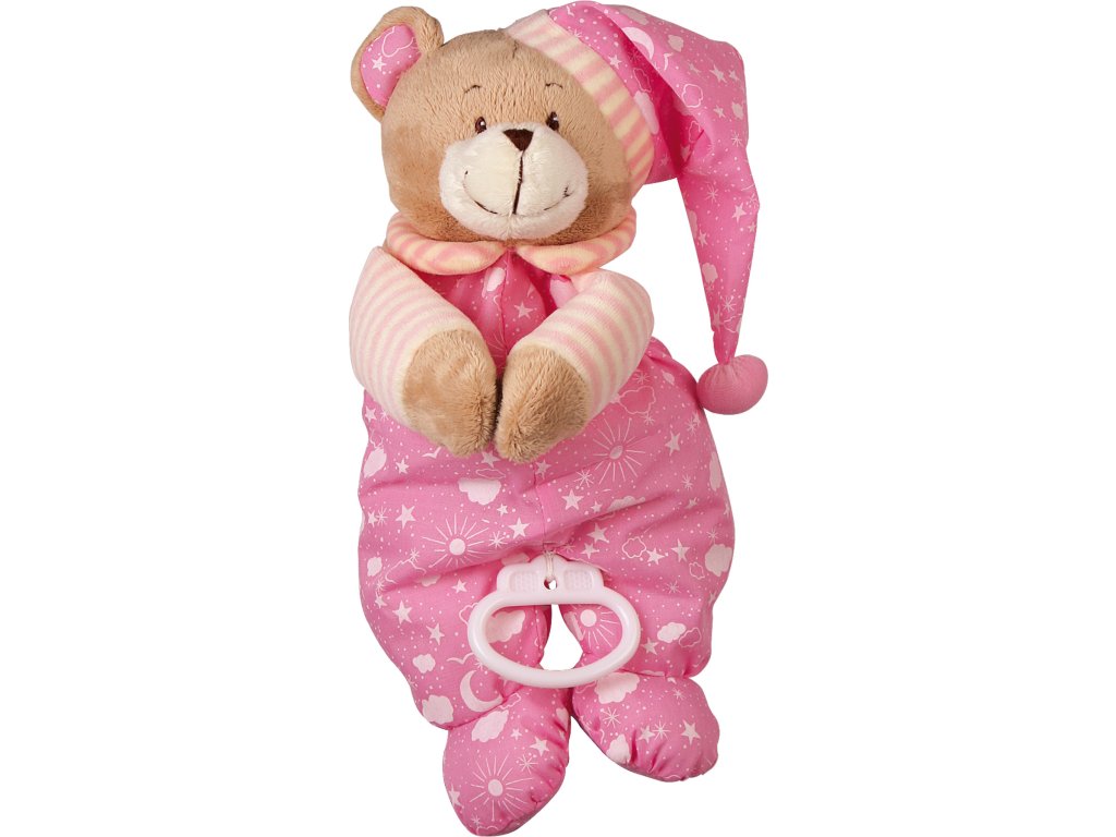 Už žádné noční můry! Medvídek v růžovém pyžamku přeje sladké sny! Tělíčko má z měkkého materiálu a na tváři veliký úsměv. Po hodinách zábavy a hraní Vám pomůže usnout za ukolébavky „Dobrý večer, dobrou noc“. Méďa je ten pravý kamarád, ve štychu Vás nenechá! Hlavní vlastnosti: rozvíjí představivostmožnost zavěšeníhraje ukolébavku „Dobrý večer, dobrou noc“roztomilý společník a skvělý dárek pro naše nejmenšíDoplňkové parametry