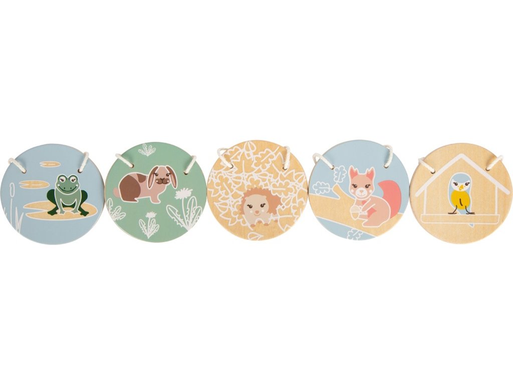 Zvířátka: | žabka, veverka, pták, králíček, ježek |