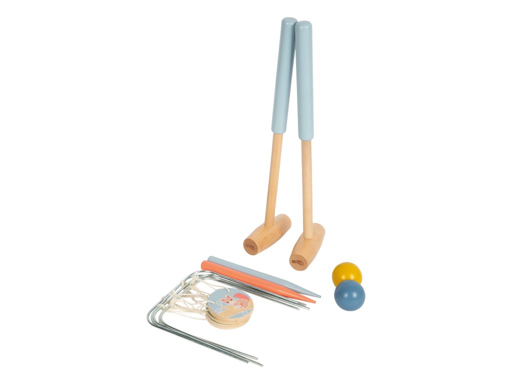 Rodinná zábava s roztomilými motivy zvířátek! Tato klasická venkovní hra pro všechny věkové kategorie je perfektní na zahradu, do parku nebo na pláž. Je vyrobena z robustního dřeva a obtížnost hry je možné přizpůsobit věku a schopnostem hráčů. Kolečka k zavěšení na branky s roztomilými motivy zvířat (veverka, ježek, králík, sýkora modřinka a žabka) povzbuzují děti ke správnému zamíření na cíl. Branky lze snadno zapíchnout do země. Oddělitelná držadla paliček a praktický látkový pytlík umožňují pohodlné skladování a přepravu, takže si sadu můžete vzít kamkoli s sebou. Kroket můžete zkombinovat s dalšími hrami z produktové řady Garden Buddies, které nabízejí spoustu zábavy a pohybu. Hlavní vlastnosti: 2 kroketové paličky, 2 koule, 2 kolíky, 5 branek, 5 závěsných koleček se zvířátkyrodinná pohybová hra pro všechny věkové kategoriev praktickém látkovém pytlíkuodnímatelná držadla paličekrůzné úrovně obtížnostirozvíjí motorické dovednosti a obratnostsoučást produktové řady Garden BuddiesDoplňkové parametry