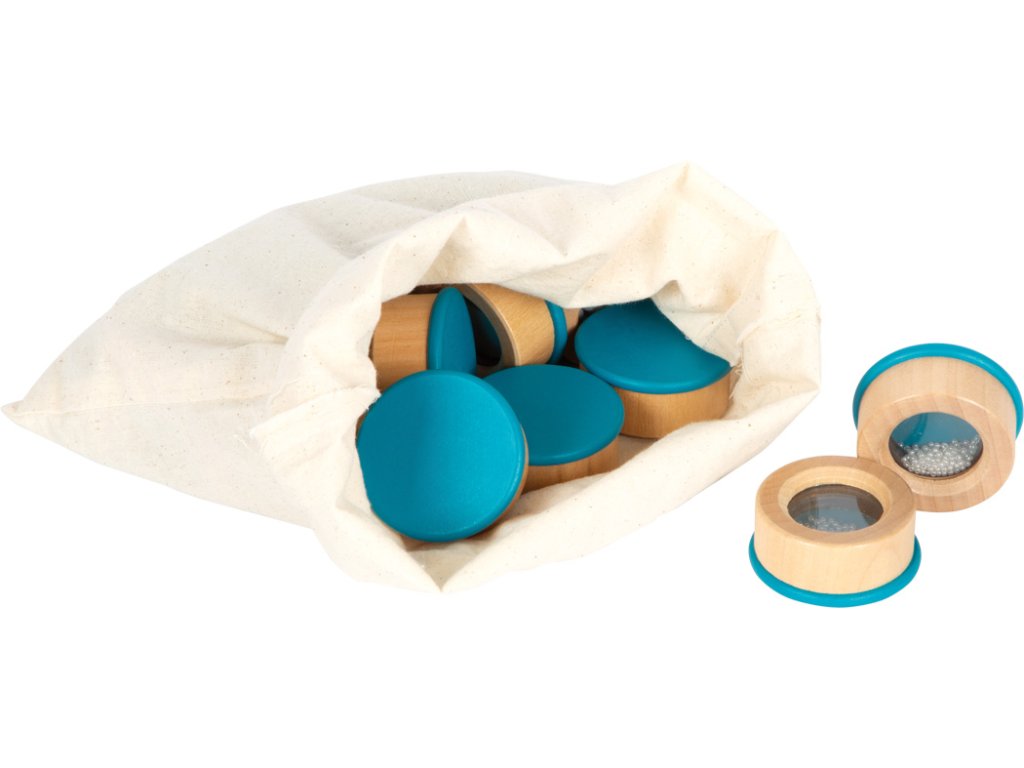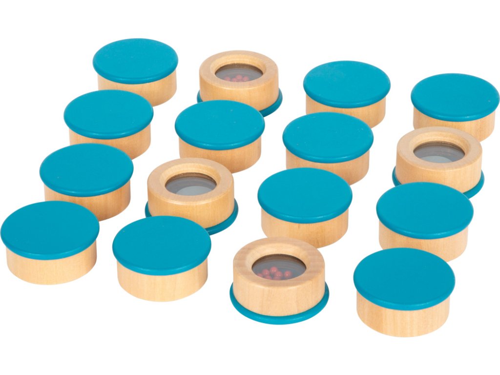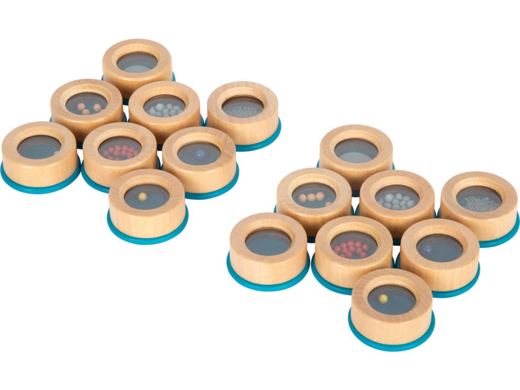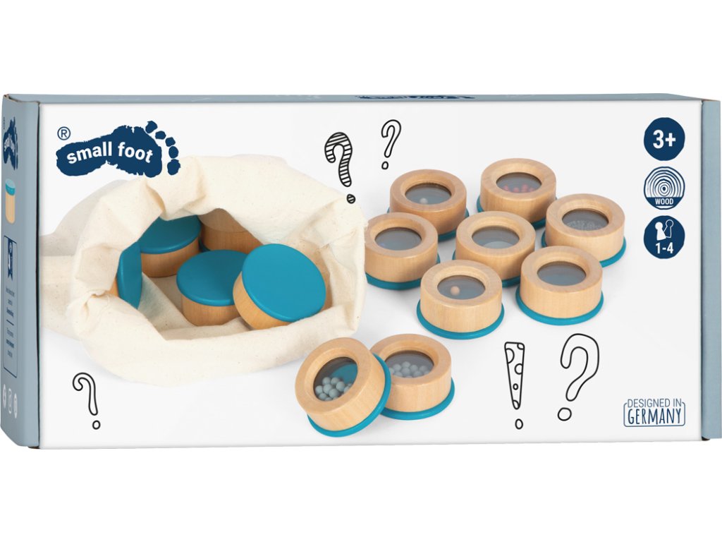 Poslechové pexeso "Sensory" je hra, která oslovuje smysly a podporuje rozvoj dětských dovedností. S touto akustickou senzorickou hrou z produktové řady "Sensory" je cílem rozpoznat, pojmenovat a spárovat správné dvojce na základě pečlivého naslouchání tomu, jak znějí. 16 ks dřevěných nádobek je naplněno materiály, jako jsou dřevěné kuličky, kovové kuličky, plastové korálky, které při zatřesení vydávají různé zvuky. Průhledy z plexiskla umožňují kontrolu jejich obsahu. Hru lze hrát samostatně nebo ve více hráčích a je vhodná zejména pro děti a osoby se zrakovým postižením. Ergonomicky tvarované dřevěné herní prvky díky své velikosti a vyčnívajícímu víku boxu snadno uchopí děti i starší lidé. Po dokončení hry se všechny herní prvky dají uložit do textilního sáčku. Tato smyslová hra nejen podporuje rozvoj vlastního sluchu a paměti, ale také slibuje spoustu rozmanité herní zábavy díky různým variantám hry. Lze ji hrát také jako hru vizuální paměti, protože různé materiály uvnitř mají také různý vzhled a barvu. Je to všestranná společenská hra orientovaná na paměť, která trénuje sluch a zároveň je hodně zábavná!