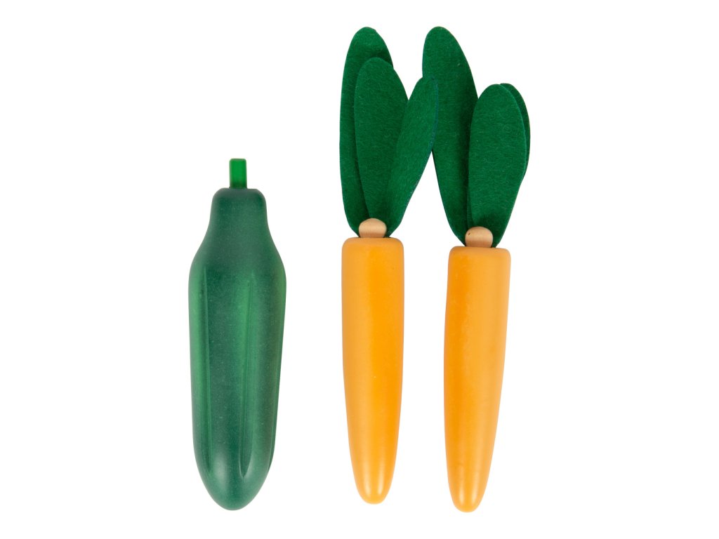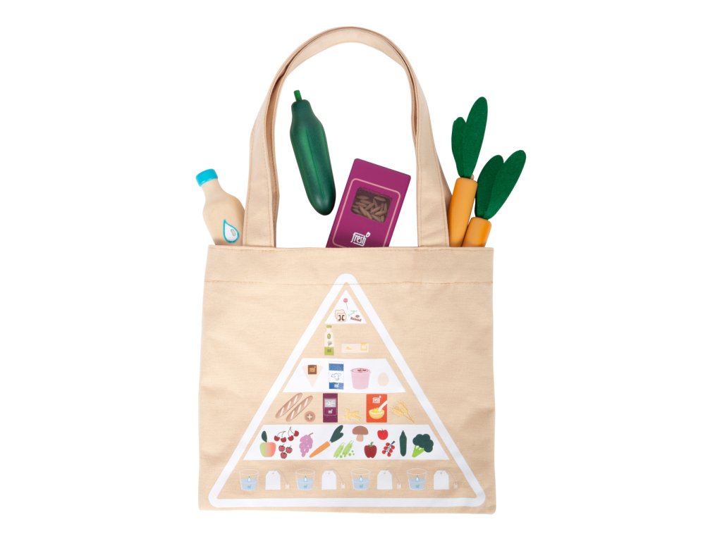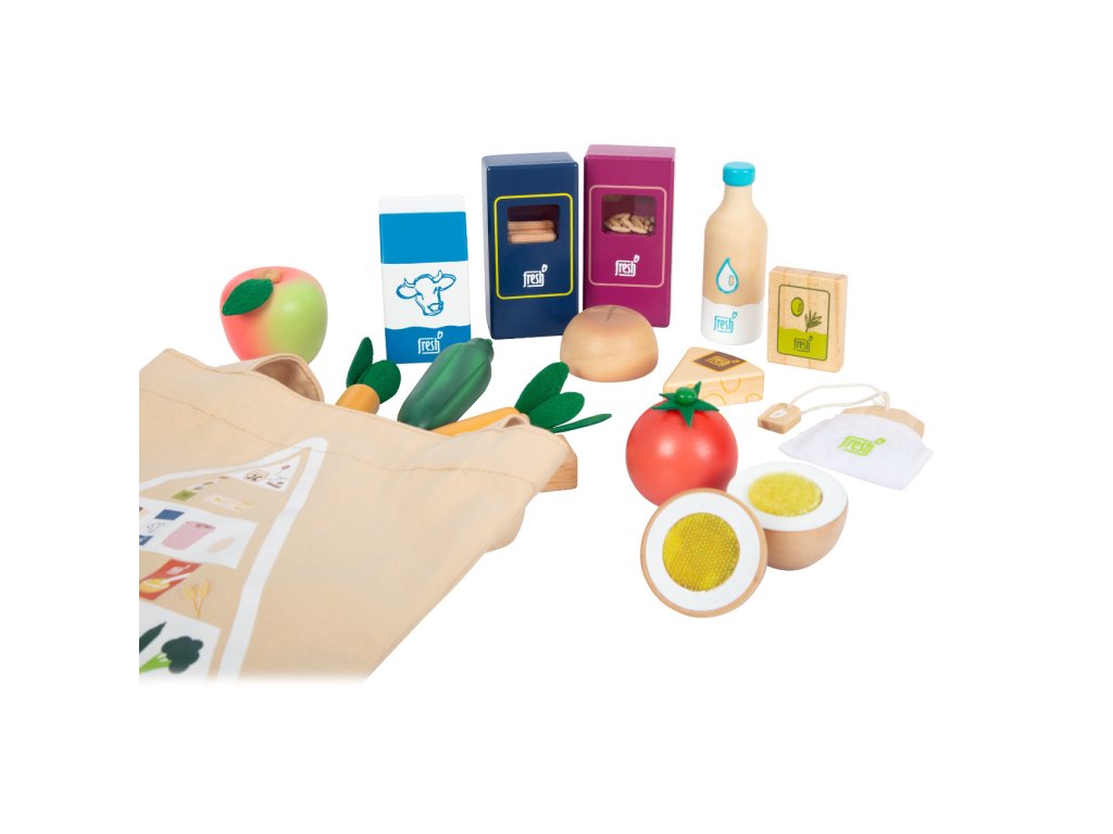 Bezmasá jídla v dětské kuchyňce! Tato obsáhlá sada představivého jídla ze dřeva děti nadchne pro realistickou hru na role, v tematice vyvážené vegetariánské stravy. Balení rýže a těstovin má průzor, bavlněná taška je potištěna potravinovou pyramidou – děti se jednoduše naučí o správném stravování! Mléko, máslo, sýr, olej, vejce, rýže, těstoviny, pečivo, jablko, rajče, okurka a mrkev. Široký výběr vegetariánských potravin, které se budou perfektně hodit do dětských kuchyněk a prodejních stánků. Láhev vody a čajový sáček tuto sadu krásně doplňují. Hlavní vlastnosti: dřevěná sada potravin v tematice vyvážené a vegetariánské stravyv balení bavlněná taška potištěná potravinovou pyramidouobsáhlá sada vegetariánských potravin: mléko, máslo, sýr, olej, vejce, rýže, těstoviny, pečivo, jablko, rajče, okurka, mrkevdřevěná láhev vody, čajový sáček ze dřeva a plstirealistické balení těstovin a rýže s plexisklem (při zatřesení vydává balení zvuk)děti se zábavnou formou naučí o stravovacích návycíchzabaleno v znovupoužitelném obalu, děti se při hře naučí něco nového o ekologiipotravinám jednoduše porozumí i nejmenší dětikompatibilní s dalšími produkty z řady „Fresh“Doplňkové parametry