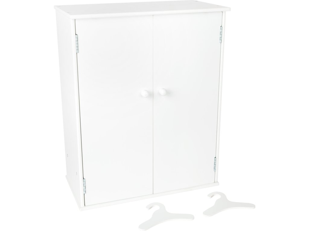 Organizace je polovina úspěchu! Tato šatní skříň pro panenky v jednoduchém designu zaujme zákazníky svou pohodlnou konfigurací. Malým dětem umožňuje hravě udržet ve všem pořádek. Oblečení panenek lze zavěsit na integrovaná ramínka nebo položit na police. Výsuvná zásuvka nabízí také prostor pro vybrané věci pro panenky. Hlavní vlastnosti: všechny jejich oblíbené outfity panenek jsou na jednom místěpraktický doplněk sady nábytku pro panenky součástí jsou dvě ramínka na šatyDoplňkové parametry
