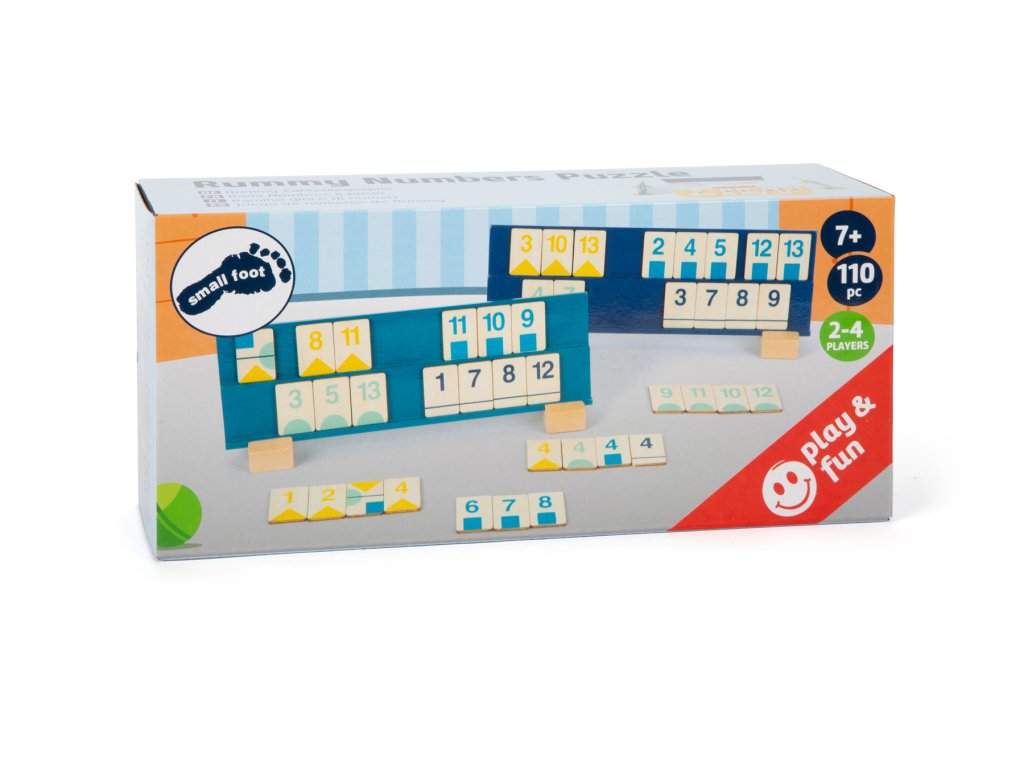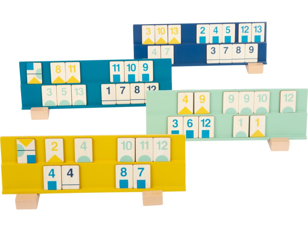 Hra pro celou rodinu! Rummy je klasická logická hra s čísly. Je populární u dětí i dospělých. Dřevěná hra v moderním designu zaujme nejen barevnou kombinací. Je vhodná i pro barvoslepé, dílky k sobě pasují kromě barvy i grafickým označením, které lze na dílcích také nahmatat. Ideální hra na cesty.Kdo vyloží všechny dílky jako první? Robustní stojánek z pevného dřeva je stabilní, nepřevrátí se ani pod tíhou hracích dílků. Hlavní vlastnosti: jedna z nejhranějších rodinných her na světě vhodná pro barvoslepéhrací dílky lze uložit do přiložené zadní částiideální na cesty Zkrácený návod hry:Před začátkem hry položte hrací dílky na stůl, číslicemi dolů. Každý hráč si vezme jeden dílek. Začíná hráč s nejnižším číslem. Pokud hrají 2 hráči, každý si vytáhne 10 hracích dílků. Pokud hrají 3 až 4 hráči, každý si vytáhne 7 hracích dílků. Tyto dílky si poté rozložte na své stojánky tak, aby na ně ostatní hráči neviděli. Zbývající kameny položte na stranu. Cílem hry je vyložit dílky na stůl v kombinaci tercie nebo postupky. Dílky žolíků můžete použít v jakékoliv kombinaci pro tercie i postupky. Můžete ale použít jen jednoho žolíka pro každou kombinaci. Pokud dílky vyložit nemůžete, vezměte si dílek z dobíracího balíčku, jinak jedno kolo stojíte...Doplňkové parametry