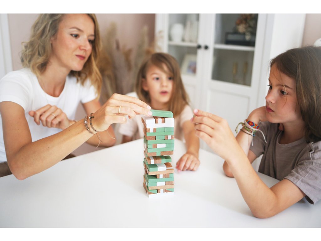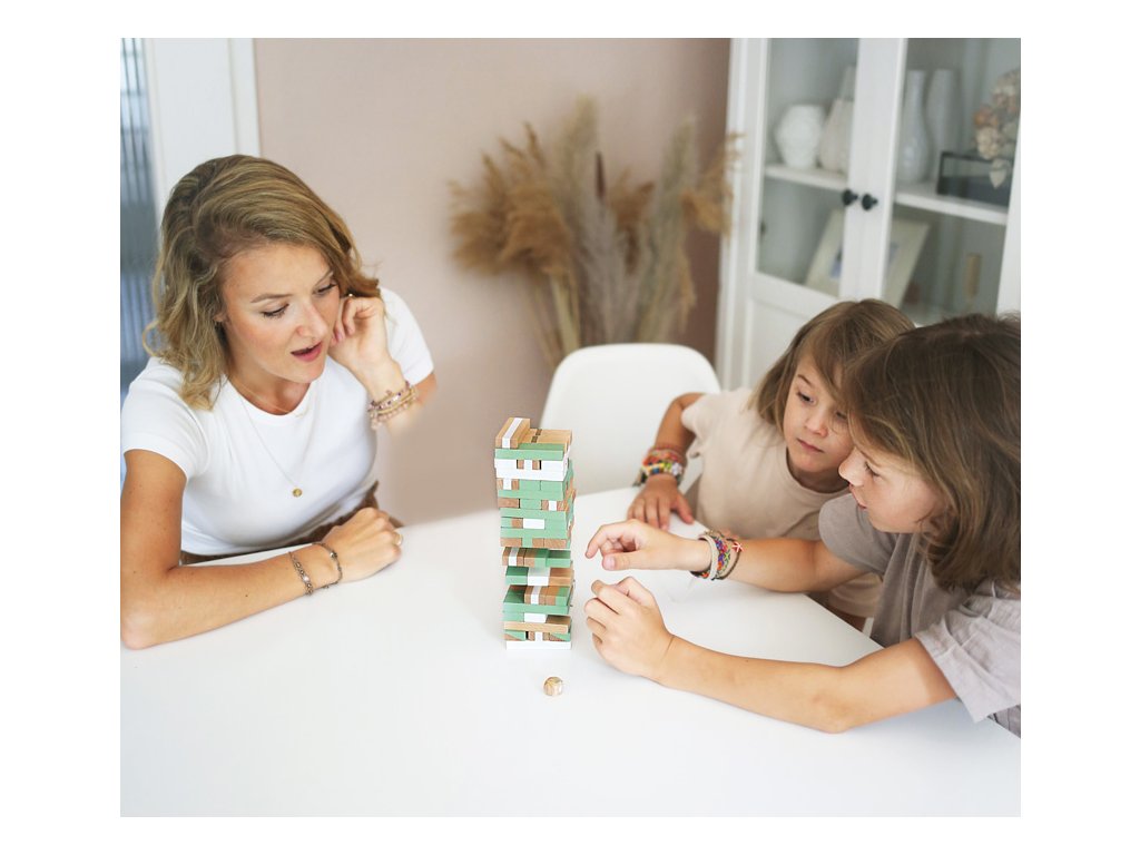 Klasická hra v moderním a elegantním vzhledu s krásnými zlatými detaily, trendy pastelovými barvami v kombinaci s bílou barvou a jasně viditelným dřevem. Hra se skládá z 54 vysoce kvalitních a pevných dřevěných dílků s různými designy. Různé úrovně obtížnosti a konstrukce věže, můžete hrát s kostkou i bez ní. Vysoce kvalitní hračka, která je pěkná na pohled. Balení 2v1, krabice neslouží jen jako úložiště, pomůže vám také se stavbou věže. Pomáhá s rozvojem jemné motoriky a soustředěnosti dětí. Skvěle se hodí k ostatním klasickým hrám z kolekce Gold Edition. Hře lze jednoduše porozumět, je zábavná a nadchne lidi všeho věku. Hlavní vlastnosti: Dřevěná rodinná hra Rozvíjí jemnou motoriku a soustředěnostKrásná barevná kombinace a viditelné dřevoDoplňkové parametry