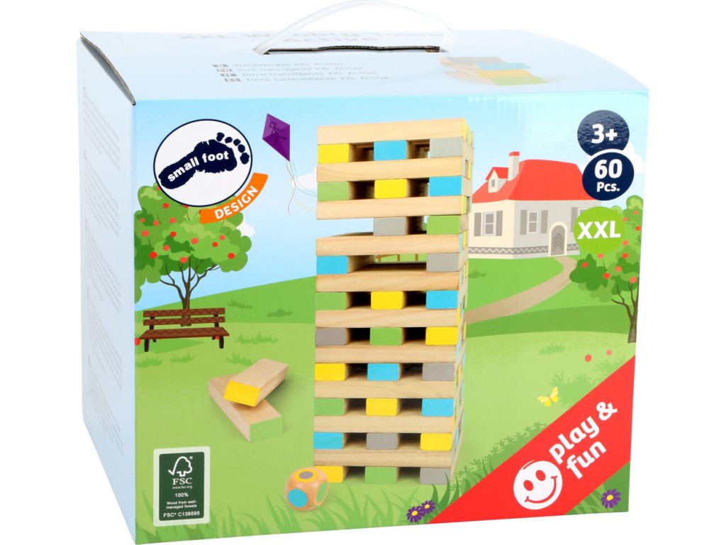 Zapomeňte na klasické stolní hry a připravte se na dobrodružství, které vás zvedne ze židle! Představujeme vám gigantickou hru, která vám přinese vzrušení přímo do vaší zahrady. Ocitnete se v srdci akce, kde každý blok může znamenat buď vítězství, nebo vaši zkázu! Zažijte napětí, když pečlivě vytahujete jednotlivé bloky z vysoké věže! S každým pohybem se hraje nejen o vaši dovednost, ale i o vaši odvahu. A s přiloženou barevnou kostkou se hra stává ještě vzrušujivější - nikdy nevíte, který blok budete muset vytáhnoutl! Věž vyrobena z kvalitních materiálů a její velké, přírodní stohovací bloky jsou navrženy tak, aby vynikly na pozadí vaší zelené oázy. Každá hra je vizuálním potěšením díky modernímu designu a trendy barvám. Nejenže poskytne hodiny zábavy pro celou rodinu, ale zároveň pomáhá rozvíjet trpělivost, motoriku a koncentraci hráčů. Ať už jste malí nebo velcí, tato hra je ideální způsob, jak si užít venkovní hraní s přáteli a rodinou. Staňte se hvězdou vaší zahradní párty. Vytvořte si nespočet vzpomínek a staňte se mistrem rovnováhy a strategie. Hlavní vlastnosti: oblíbená hra ve velikosti XXLobtížnost lze měnit hraním s kostkou/bez kostkyideální pro hraní venkutrénuje koordinaci oko-ruka60 stohovacích kamenů, 1 kostkavhodné od 4 let Značka a certifikát FSC® (Forest Stewardship Council) zaručuje, že dřevo, ze kterého byl produkt vyroben, nebylo vytěženo nelegálně a pochází z lesů obhospodařovaných šetrným či přírodě blízkým způsobem, ve kterém jsou dodržovány přísné environmentální a sociální požadavky. Značka FSC® na výrobku znamená, že svým nákupem pomáháte chránit lesy a podporujete šetrné, odpovědné či přírodě blízké hospodaření, díky kterému jsou naše lesy stabilnější, zdravější, mají přirozenou druhovou skladbu a lépe odolávají negativním následkům klimatických změn.Doplňkové parametry