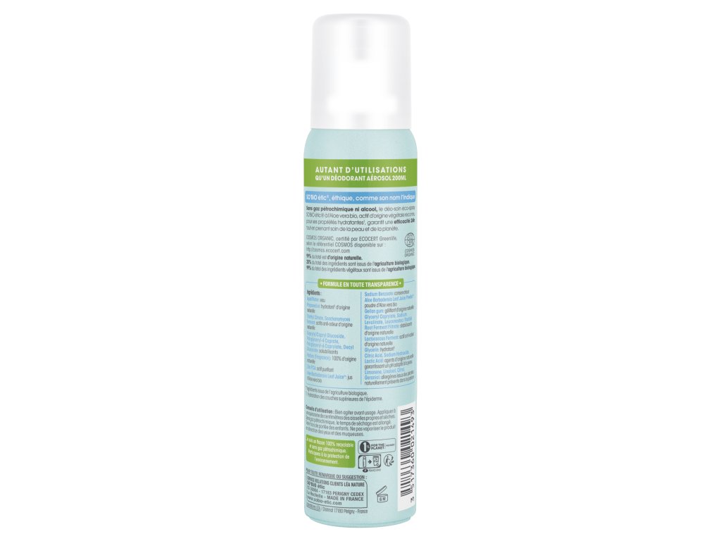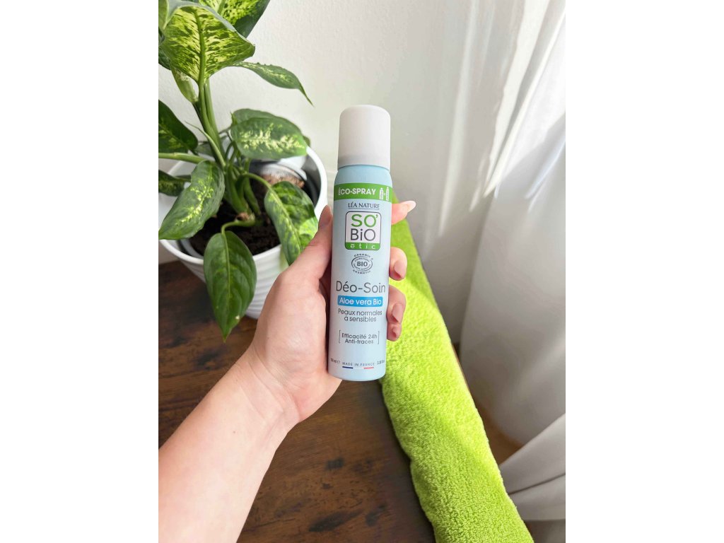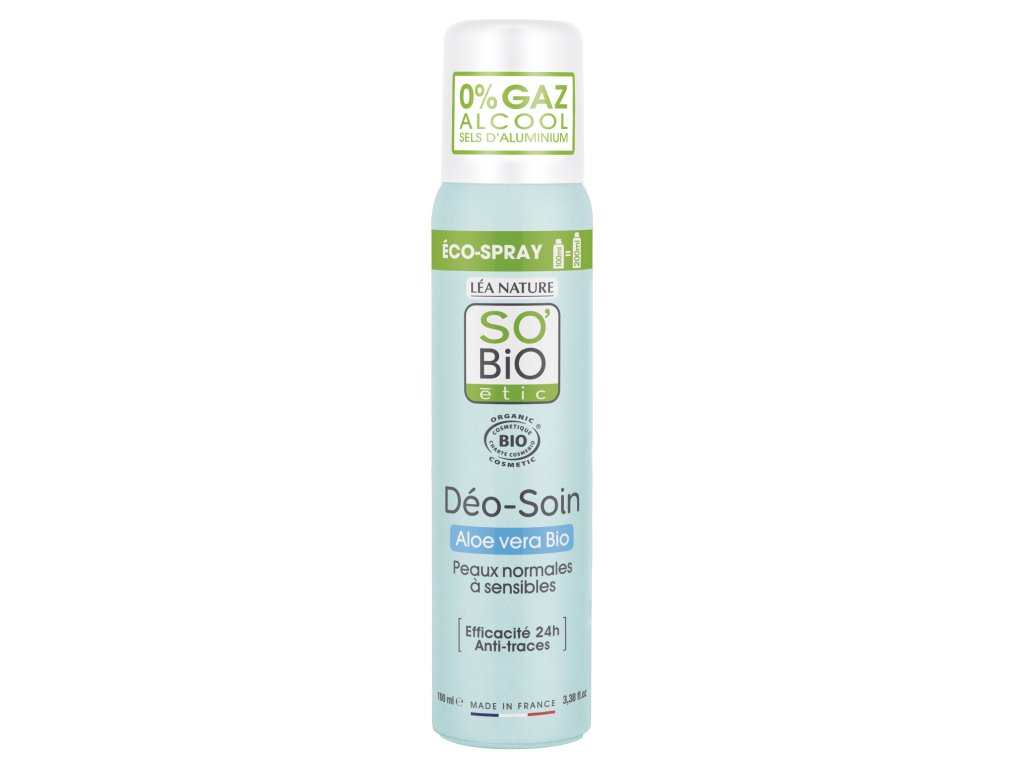 Přírodní deodorant SO’BiO étic ECO Spray Aloe vera BIO jemně pečuje o normální i citlivou pokožku podpaží a chrání před nepříjemným zápachem po celý den. Díky čistému bio Aloe vera s hydratačními a zklidňujícími účinky dodává komfort a svěžest bez zanechání bílých stop. Je bez alkoholu a hnacích plynů, šetrný k pokožce i životnímu prostředí, a navíc certifikovaný Ecocert Cosmos Organic.. [[rect_deo]]Doplňkové parametry