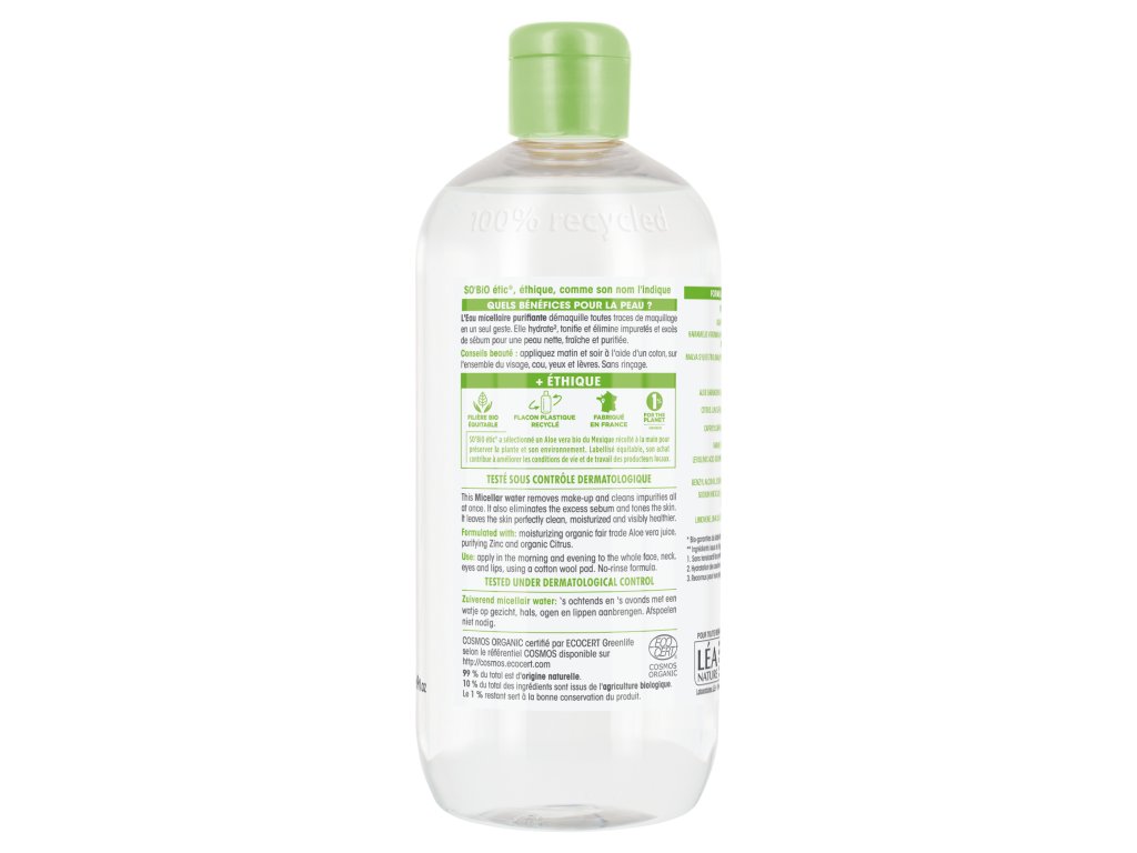 SO’BiO étic Voda micelární Aloe Vera čisticí - zinek a citrusy BIO (500 ml) - ideální pro smíšenou až mastnou pleť