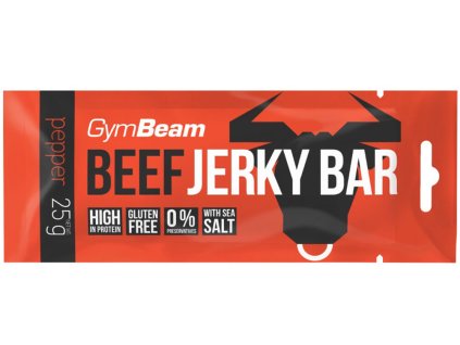 GymBeam Beef Jerky Bar kořeněné je masová tyčinka ze 100% hovězího s vysokým obsahem bílkovin a nízkým tukem. Skvělá svačina bez lepku a konzervantů na cesty i po tréninku.