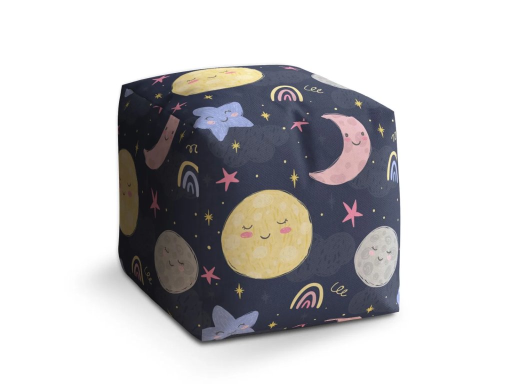 Taburet ve tvaru kostky vhodný pro děti i dospělé.