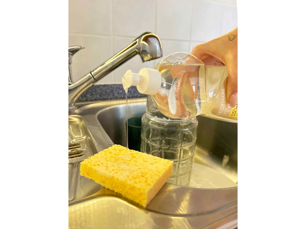 - Na nádobí: Malé množství gelu rozmíchejte v teplé vodě nebo naneste přímo na mycí houbičku.
