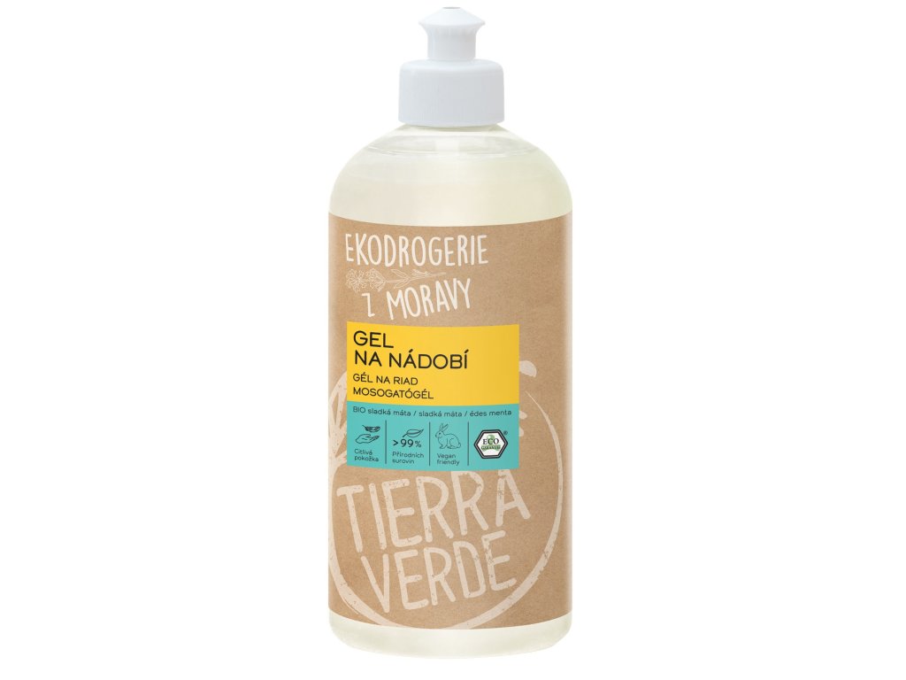 V Tierra Verde nelení a přichází s novou recepturou gelu na nádobí. Dle zásady chemického minimalismu zredukovali původních 13 přísad na 10, aniž by přípravku ubrali na jeho účinnosti. Ten si tak hravě poradí s mastnotou, bohatě pění a přitom voní jako čerstvé lístky máty. Dermatologické testování prokázalo, že gel nepůsobí újmu ani citlivé pokožce. Je pH optimal (pH blízké lidské pokožce), vegan friendly a pyšní se přísnou certifikací Ecogarantie.Doplňkové parametry