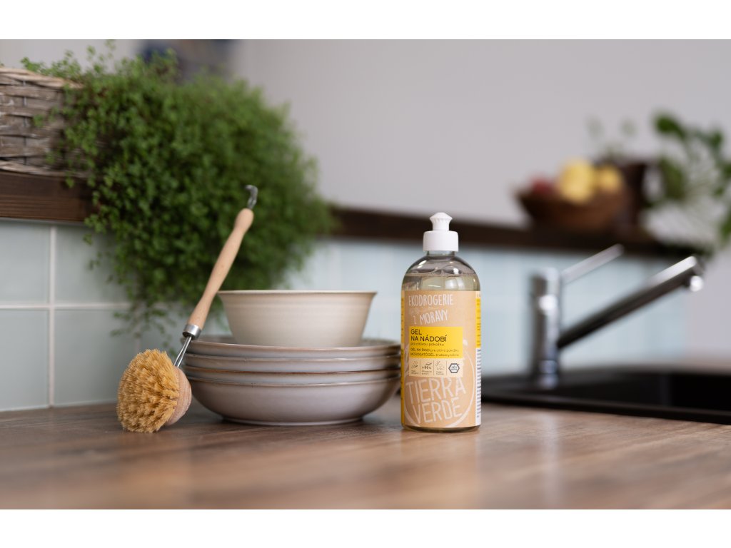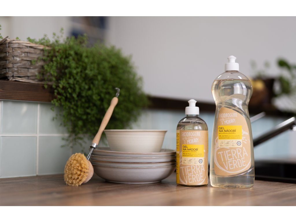 V Tierra Verde nelení a přichází s novou recepturou gelu na nádobí. Dle zásady chemického minimalismu zredukovali původních 13 přísad na 10, aniž by přípravku ubrali na jeho účinnosti. Ten si tak hravě poradí s mastnotou, bohatě pění a přitom voní jako čerstvé lístky máty. Dermatologické testování prokázalo, že gel nepůsobí újmu ani citlivé pokožce. Je pH optimal (pH blízké lidské pokožce), vegan friendly a pyšní se přísnou certifikací Ecogarantie.Doplňkové parametry
