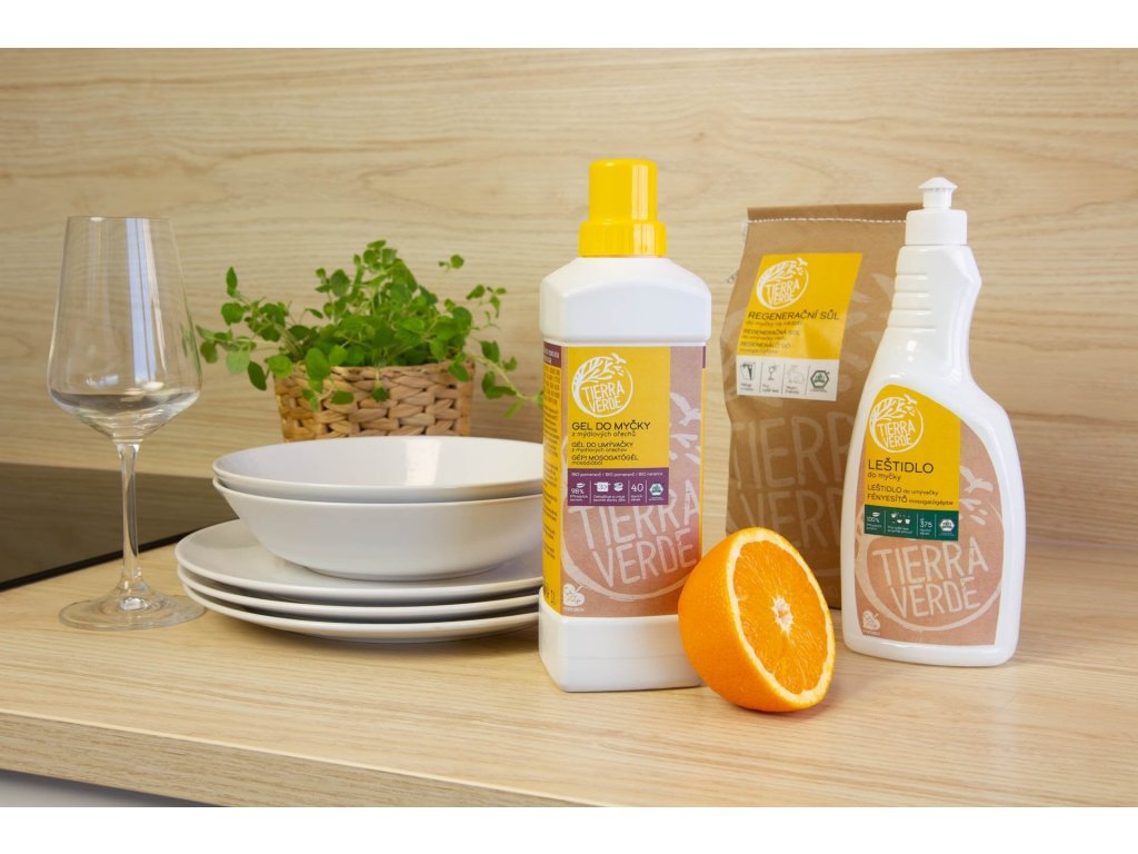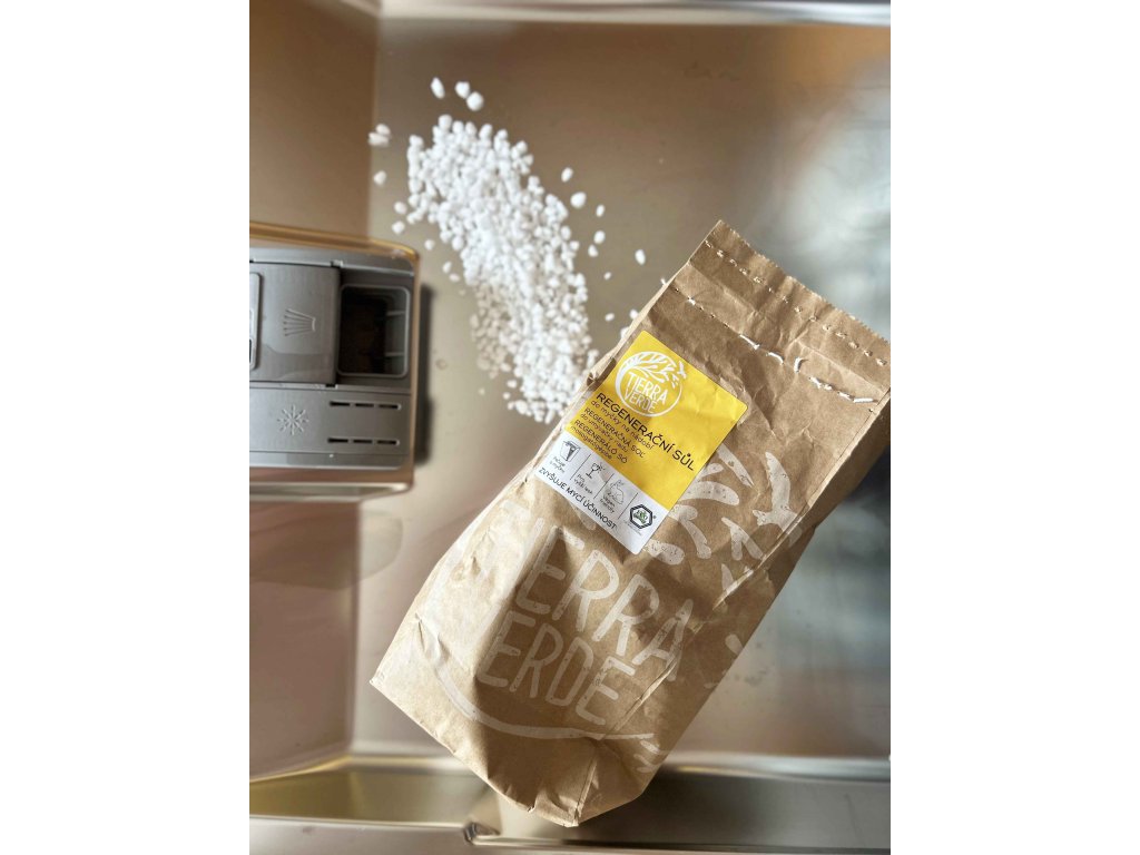 Přírodní regenerační sůl si rozumí se všemi druhy automatických myček nádobí. Zabraňuje tvorbě vodního kamene, pomáhá předcházet vzniku vápenatých usazenin na příborech, sklenicích a nádobí, změkčuje i velmi tvrdou vodu a její používání prodlužuje životnost myčky. Jde o čistý chlorid sodný - nově v ještě vyšší a účinnější kvalitě - bez příměsí jódu, fluoru a protihrudkujících látek, které výrobci často přidávají do běžné kuchyňské soli.Doplňkové parametry