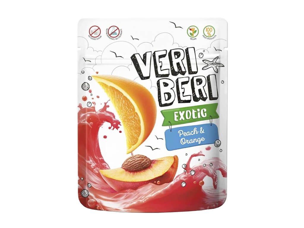 Veri Beri Broskev a Pomeranč je ovocná pochoutka, která spojuje sladkou chuť zralé broskve s osvěžující svěžestí pomeranče.