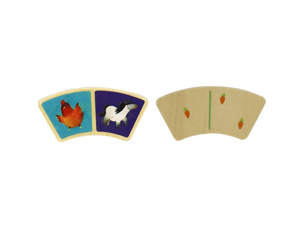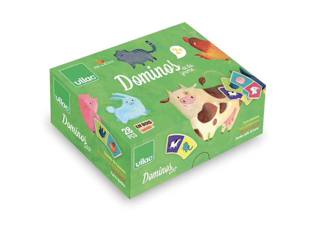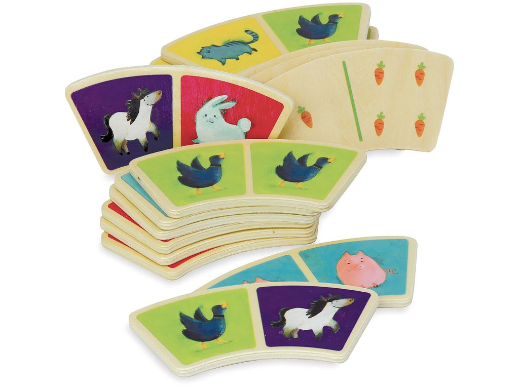 Sada dřevěných dílků domina s motivem farmy. Domino je originální díky obloukovitému tvaru jednotlivých dílků a dostatečné velikosti i pro nejmenší děti. Obsahuje 28 dřevěných domin. Hlavní vlastnosti: obloukový tvar domino dílkůobsahuje 28 dílkůvhodné od 2 letDoplňkové parametry