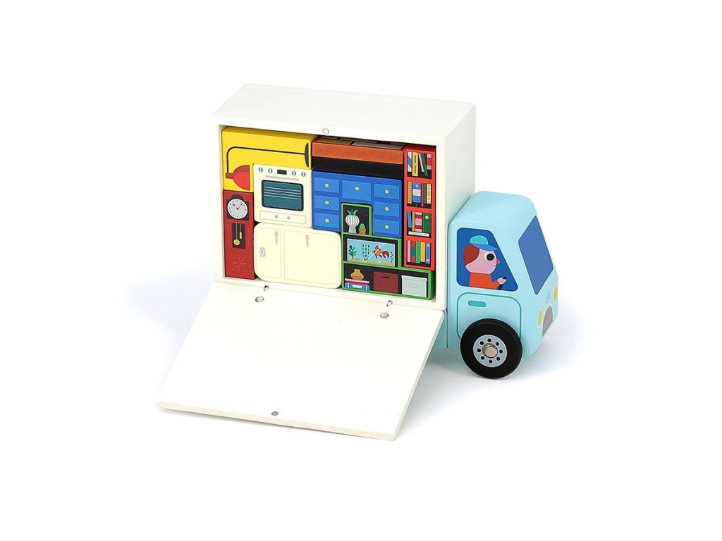 Dřevěná logická hra „Pack It Right“ – stěhování, ilustrovaná uznávanou designérkou Ingelou P. Arrhenius, představuje pro děti od 5 let zábavnou a chytrou výzvu: správně naložit nábytek do stěhovacího vozu tak, aby se vše vešlo. Každý kus – pohovka, stůl, židle a další – má své místo, což dětem pomáhá rozvíjet logické myšlení, prostorovou orientaci i jemnou motoriku. Hra zároveň podporuje plánování, organizaci a schopnost řešit problémy – dovednosti, které jsou užitečné po celý život. Kromě logického skládání nabízí hra i prostor pro volnou hru, kde si děti mohou podle své představivosti vytvářet příběhy a situace se stěhovacím vozem a nábytkem. Hlavní vlastnosti: obsahuje 1 dřevěné stěhovací auto a 19 kusů kostek nábytkurozvíjí jemnou motoriku, obratnost a koordinaci ruka–okopodporuje logické myšlení, plánování a organizaciučí děti vnímat tvary, velikosti a prostorové vnímánípodněcuje kreativitu, trpělivost a samostatné uvažovánívhodné pro samostatnou i společnou hru s rodinouoriginální design od Ingely P. Arrhenius Švédská umělkyně Ingela Peterson Arrhenius se narodila v roce 1967. Umění a design měly vždy místo v jejím životě a než začala její kariéra ilustrátorky, Ingela pracovala jako umělecká vedoucí ve Stockholmu. Poté studovala reklamní a grafický design na umělecké škole také ve Stockholmu. V roce 1992 začala podnikat jako ilustrátorka na volné noze a pracovala mezinárodně napříč reklamou, designem, nakladatelstvím… V minulosti vytvářela tiskové vzory pro tkaniny, tapety, papírnictví, také pracovala na obalech, produktovém designu, bytových doplňcích a hračkách. Její plakáty a designové hračky najdete po celém světě. Má vášeň pro retro styl, což je jasně vidět na jejich dílech a také v jejím nadšení pro typografii a barvy. Nyní žije ve Stockholmu s manželem a 2 syny.Doplňkové parametry