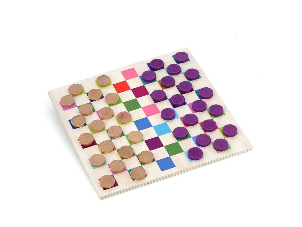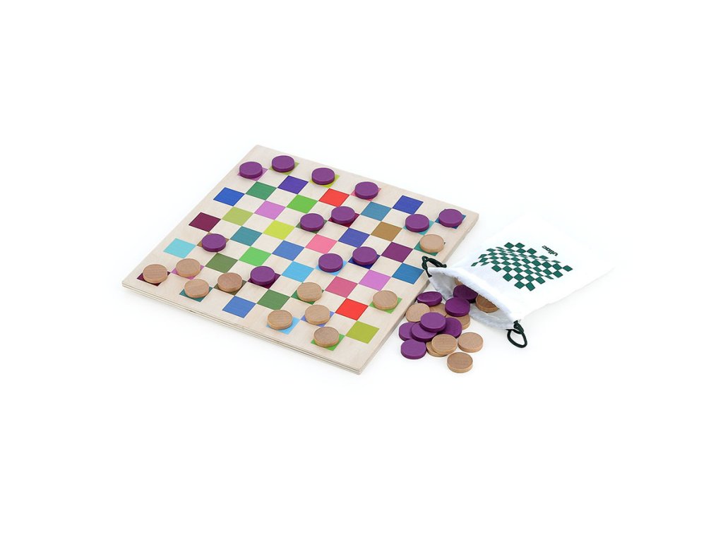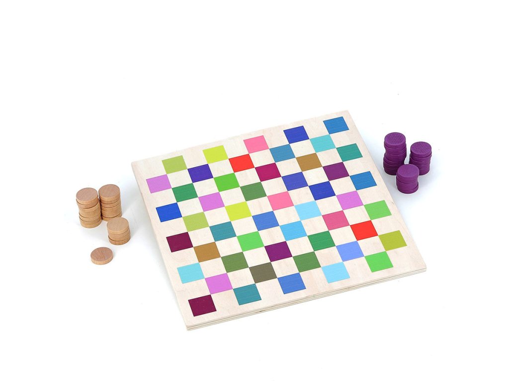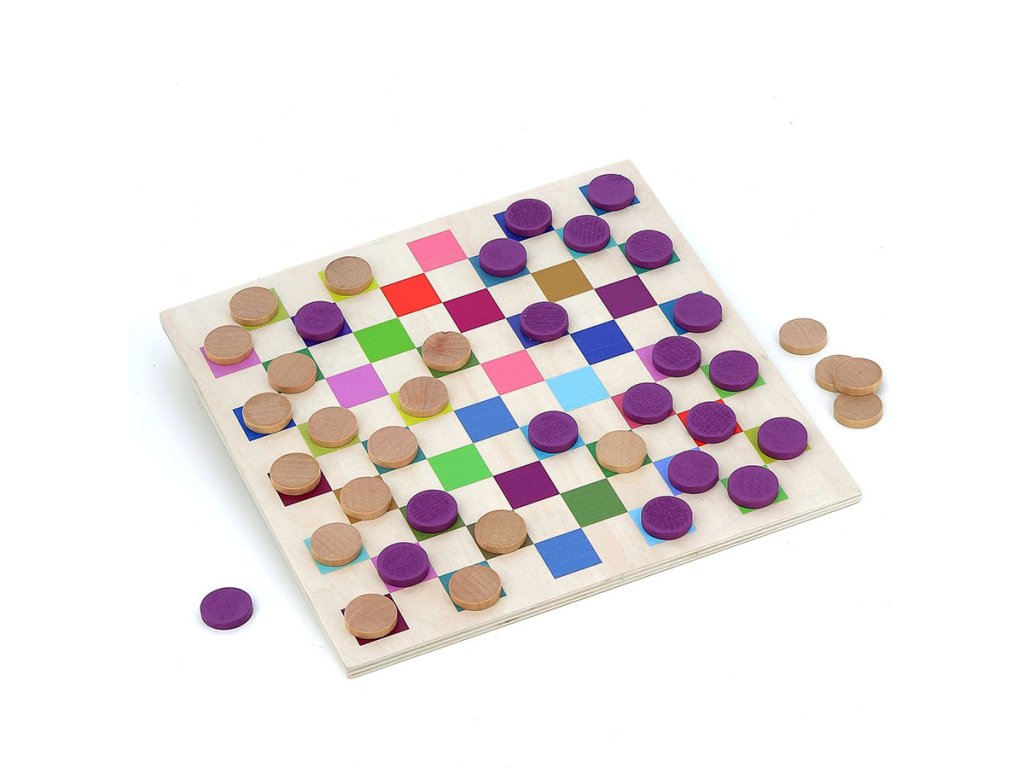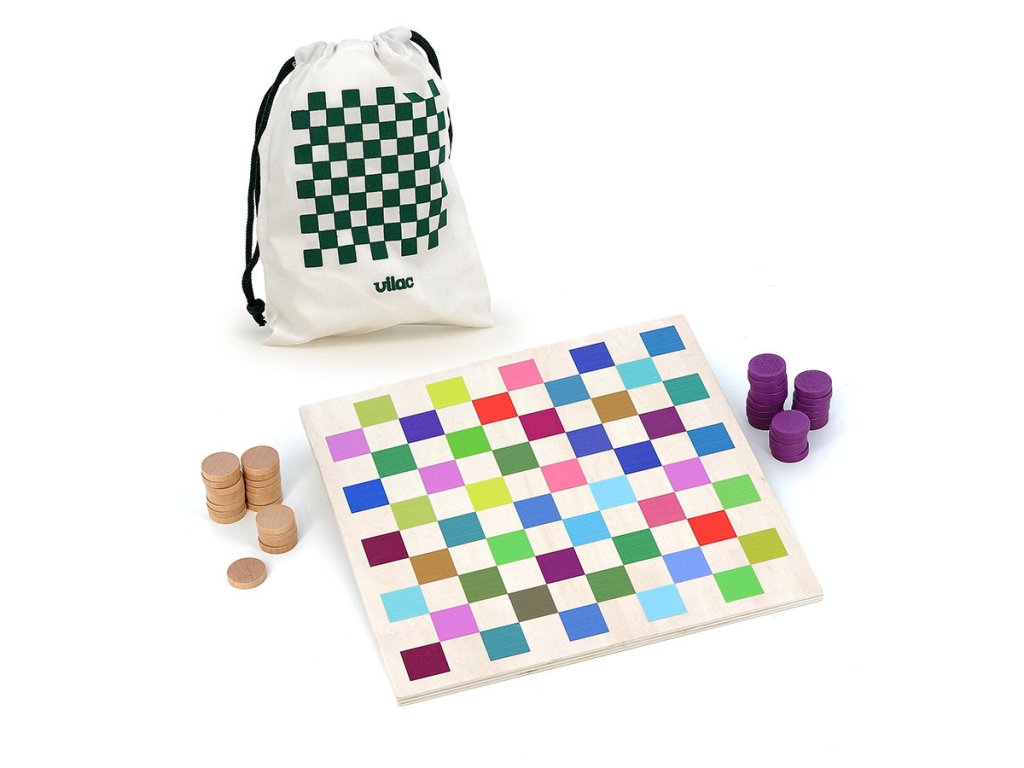Tradiční strategická hra v nevšedním designu s pestrobarevnou hrací deskou a žetony ve fialové barvě a barvě dřeva podpoří logické a strategické myšlení a trpělivost Vašeho dítěte. Je to skvělý způsob, jak stimulovat jeho kognitivní vývoj. Při hře se naučí plánovat, předvídat akce soupeře, řešit problémy a rozvíjet základní sociální dovednosti. Hra pomáhá dítěti pochopit a dodržovat pravidla a zároveň učí trpělivosti při čekání, až na něj přijde řada. Díky pestrobarevnému provedení je hra vizuálně přitažlivá a stimuluje smyslové vnímání. Je vyrobena z kvalitního odolného dřeva a součástí je látkový pytlík na hrací kameny. Hlavní vlastnosti: hrací deska, 40 hracích kamenů, látkový pytlík pestrobarevný designrozvíjí sociální dovednostiučí trpělivosti a strategickému myšlenívhodné od 5 let věkuDoplňkové parametry