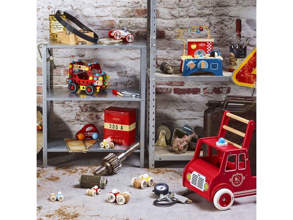 Rozměry: 48x36x33 cm Věk: 18m+ Materiál: dřevo, plast, guma