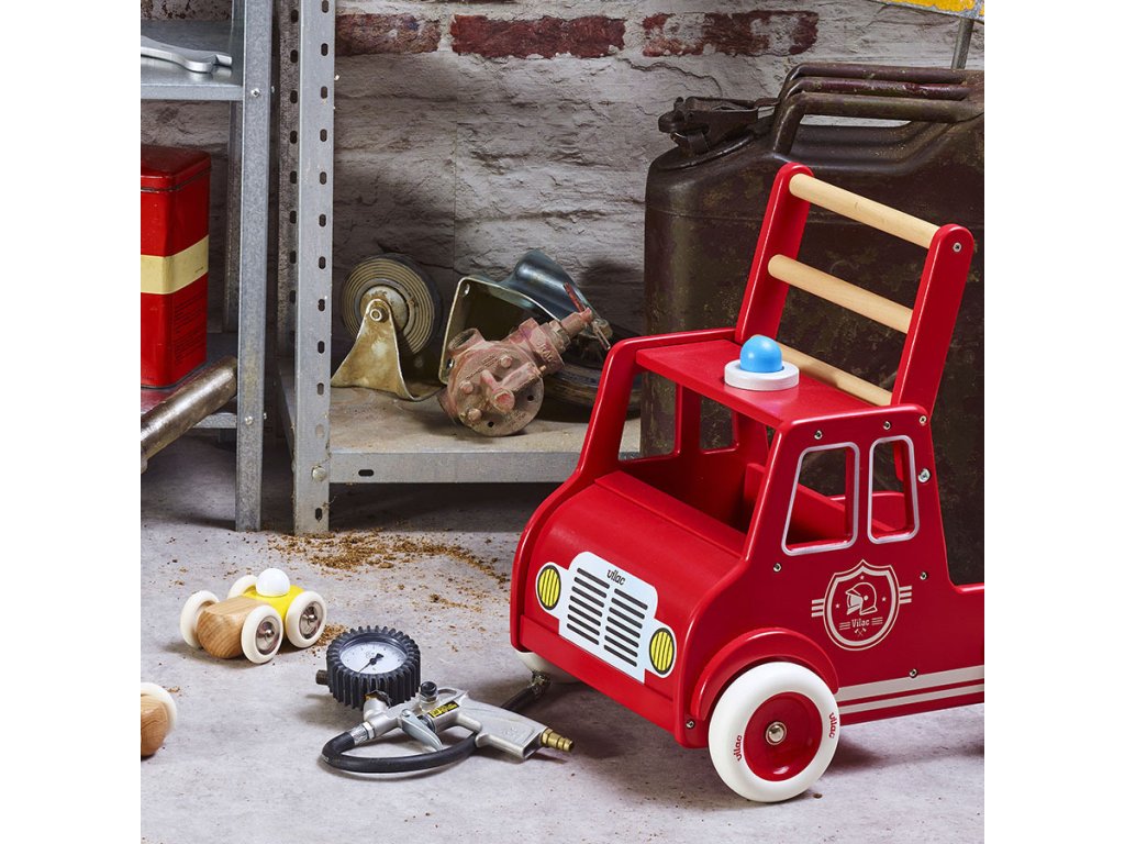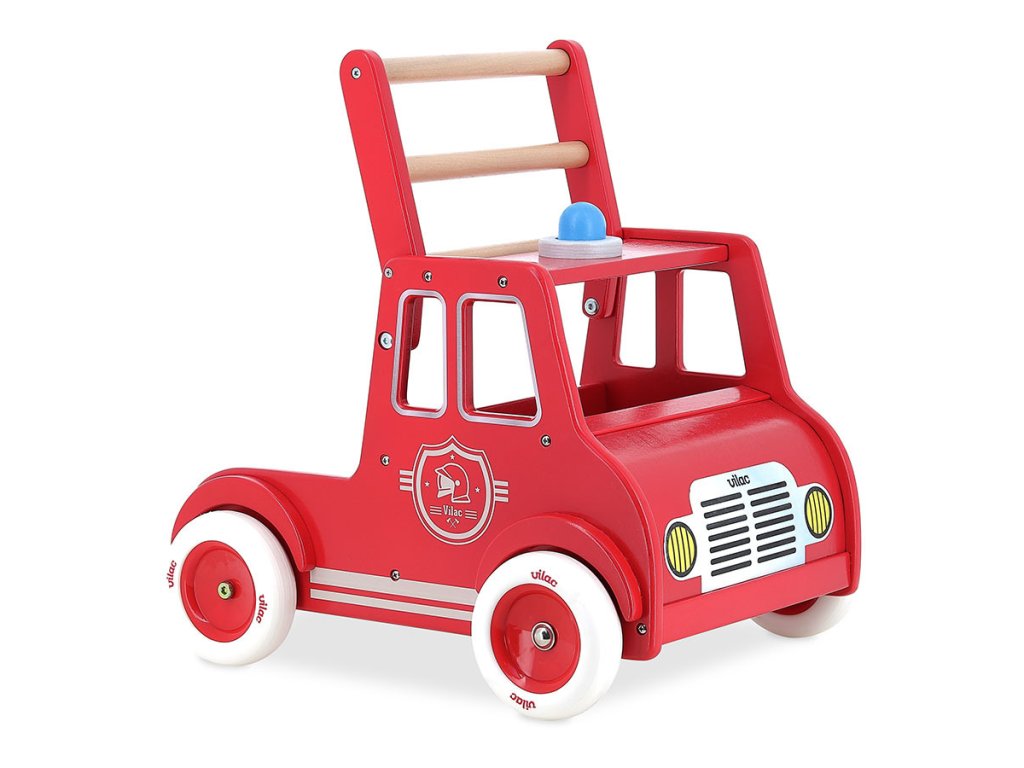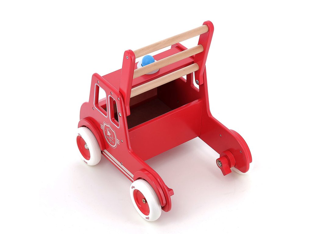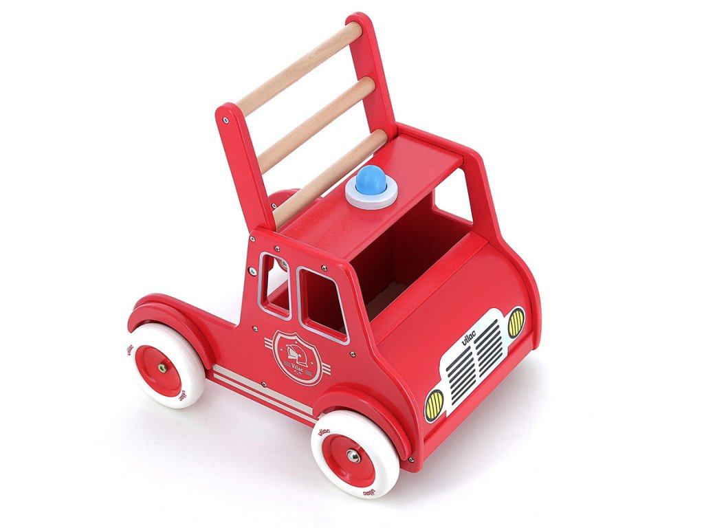 Hurá na pomoc, hasičská posádka právě vyjíždí se svým vozem. Tohle chodítko s motivem hasičského auta je připraveno být společníkem Vašeho dítěte při jeho prvních krůčcích. Je vyrobeno ze dřeva v jasné červené barvě, má pogumovaná kola pro tichý chod a malý klakson ve tvaru blikajícího světla. Motiv hasičů bude pro děti jistě velice zajímavý. Chodítko nejenže poskytuje zábavu, ale také podporuje rozvoj hrubé motoriky a koordinace. Je vybaveno pevným a bezpečným úchytem ve dvou výškových polohách a je snadno uchopitelné pro malé dětské ruce. Pogumovaná kola pro tichý chod, mají brzdový systém. Hlavní vlastnosti: podporuje rozvoj motoriky a koordinacepogumovaná kola pro tiché bezpečné ježděnístabilní díky robustní konstrukcibrzdový systém kolmotiv hasičůDoplňkové parametry