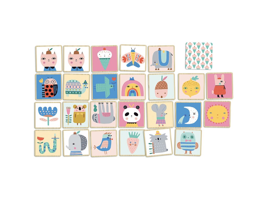 Roztomilé pexeso se zvířátky a objekty ilustrované Suzy Ultman. V balení 48 dílků, dodává se v dřevěné krabici. Vhodné od 2 let.