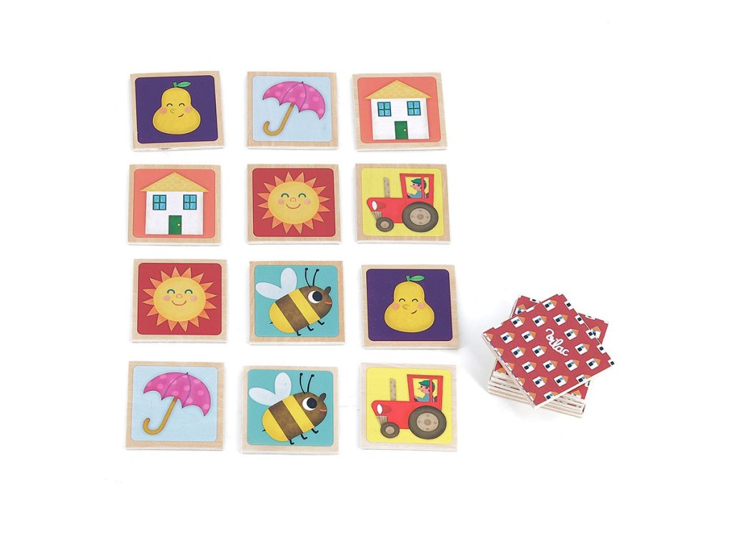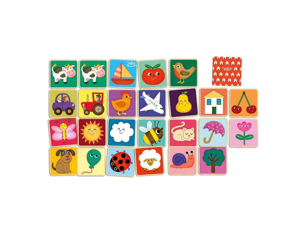 Hledáte originální pexeso? Najděte traktor, krávu, auto, jablko atd... Vypravte se do fantastického světa za doprovodu krásných ilustrací od Mélusine Allirol. Herní dílky jsou svými rozměry přizpůsobeny ručičkám nejmenších dětí. Jsou vyrobeny z odolného dřeva a opatřeny kvalitním potiskem. Pexeso dětem umožní obohatit si slovní zásobu, paměť a smysl pro pozorování. Obsahuje 48 dřevěných dílků. Hra je dodávána v krásně ilustrované kartonové krabičce, která se na poličce snadno stane nepřehlédnutelnou dekorací.