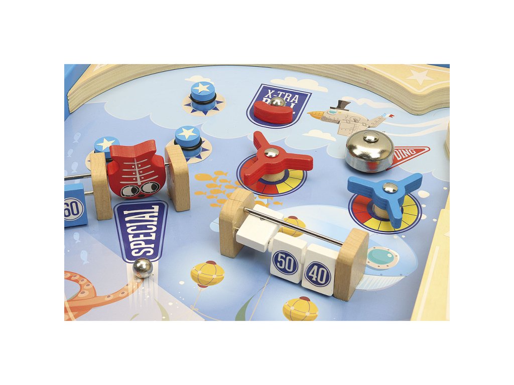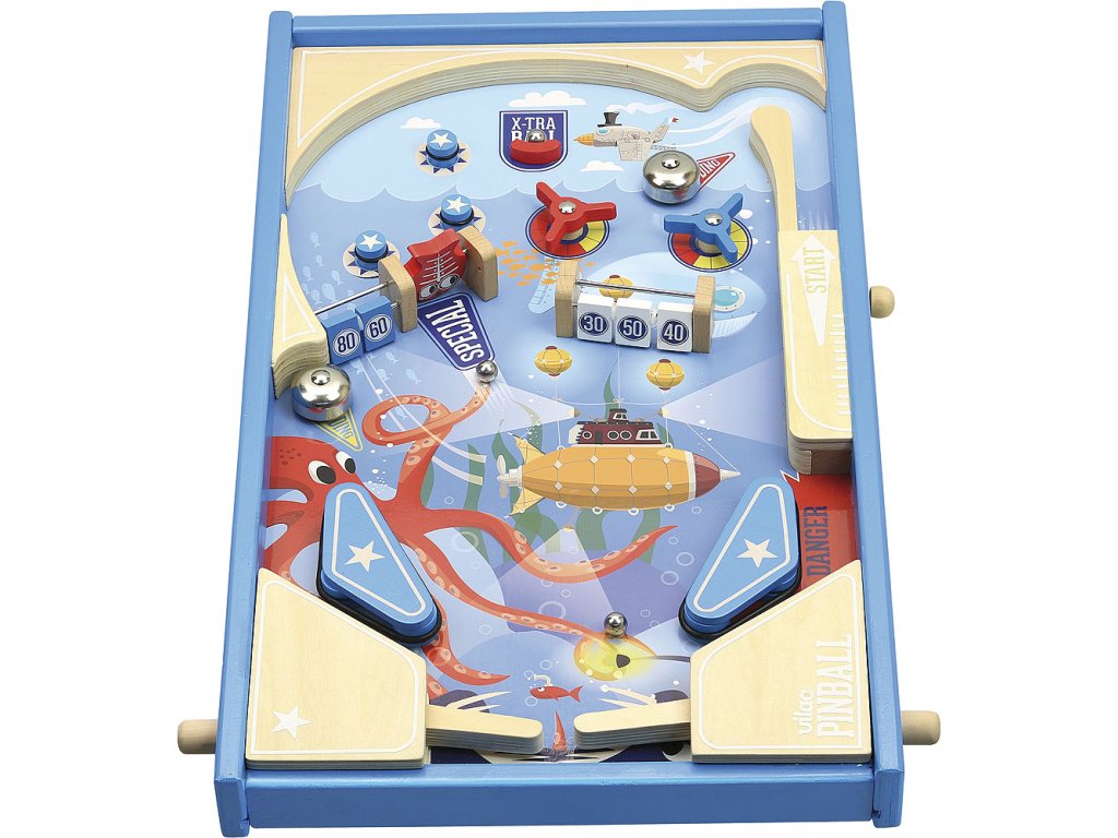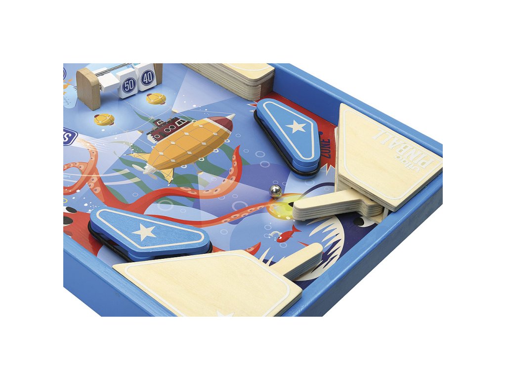 Tento dřevěný pinball je dodáván se 3 kovovými míčky, díky kterým můžete sestřelovat své cíle, zvonit na zvonku otočit turnikety... Získejte co nejvyšší skóre a vyhrajte tuto podmořskou bitvu! Dřevěné nožky jsou oddělitelné. Hlavní vlastnosti: oblíbená hračka v dřevěné podoběsoučástí balení jsou 3 ks kovových kuličeksklopné nožičky pro ideální sklon dráhyDoplňkové parametry