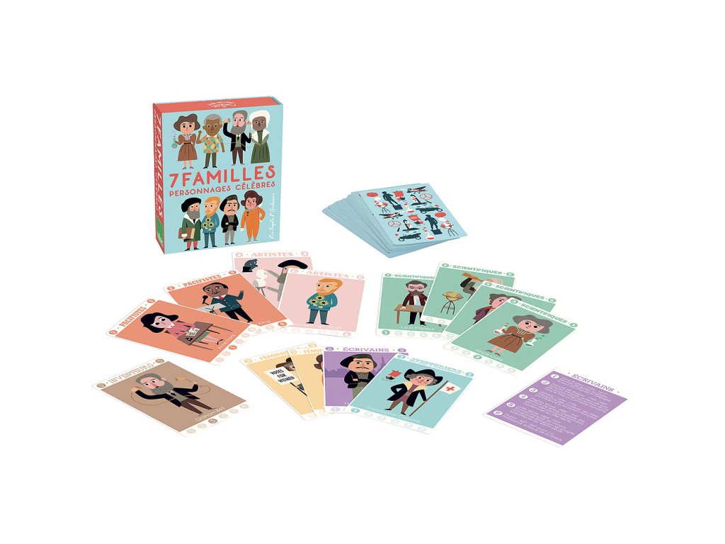Do rodiny vynálezců bych chtěl... bratry Lumiéresovy! A do rodiny dobrodruhů bych chtěl... Marca Pola! Tato originální hra 7 rodin vám umožní objevit nebo znovu objevit některé ze žen a mužů, kteří se zapsali do historie svými činy. Sada obsahuje 42 karet a mini-biografii každé postavy. Obsah: 42 karet (7 rodin, každá složená ze 6 karet). 7 mini-biografických karet. Sedm rodin – vynálezci, vědci, pacifisté, spisovatelé, umělci, feministky, dobrodruzi. Hlavní vlastnosti: 42 karet - 7 rodin po 6 členech7 bibliografických karetzábavná a zároveň vzdělávací hra Zkrácený návod hry:Hráč na tahu musí požádat jednoho z protihráčů o jednu z karet, která mu chybí (za předpokladu, že má alespoň jednu kartu požadované rodiny). Pokud ji získá, požádá o další a tak dále. Pokud kartu nezíská, vytáhne si kartu z balíčku ve středu stolu. Pokud je tato karta tou, o kterou žádal, ponechá si ji a hraje znovu. Pokud ne, je na řadě další hráč.Jakmile je rodina úplná, musí být vyložena na stůl.Doplňkové parametry