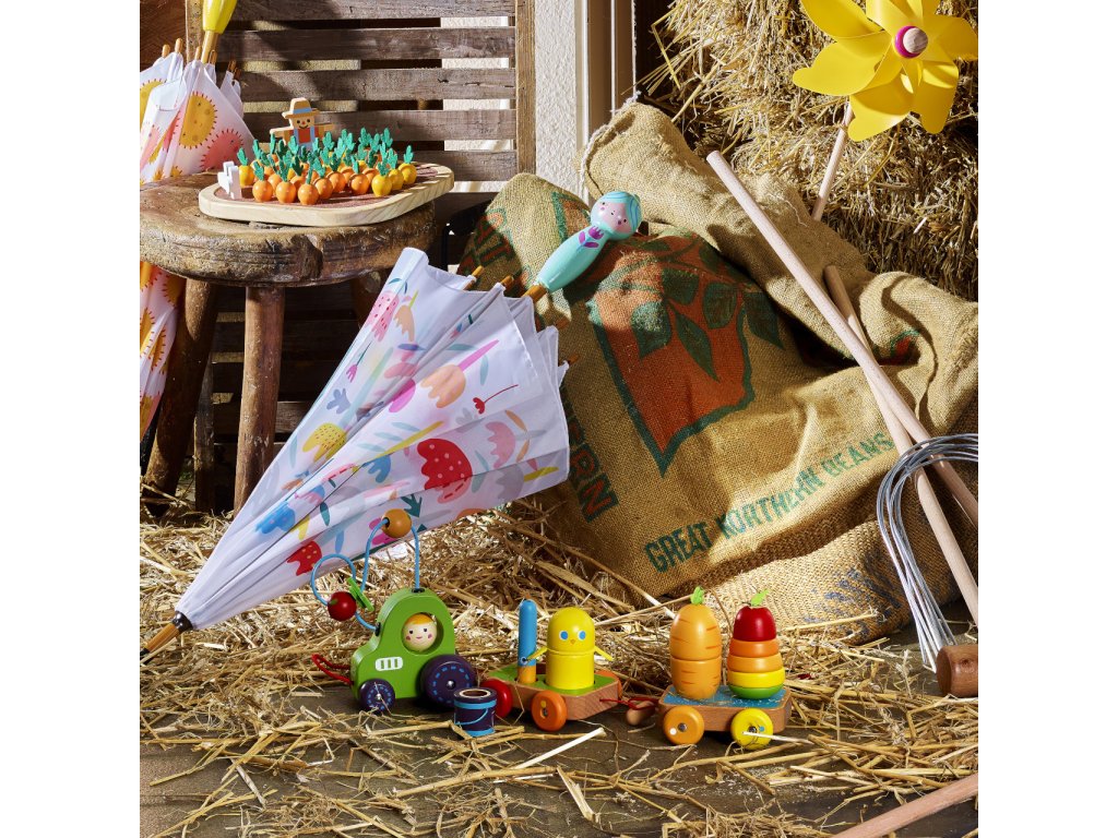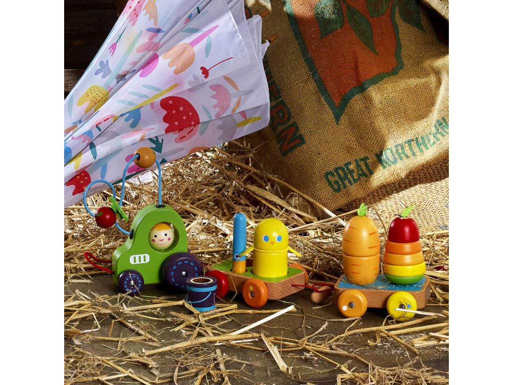 Skládací hruška ukrývá červíka, králík je schovaný v mrkvi, ptáčci pípají, kbelík s kukuřicí štěrká jako rumba koule a traktor má posuvné korálky na drátku ve tvaru ovoce. Hračka, která rozvine představivost, motoriku a zvídavost Vašich dětí. Hlavní vlastnosti: vysoká variabilitavyrobeno ekologicky, šetrně k životnímu prostředíDoplňkové parametry