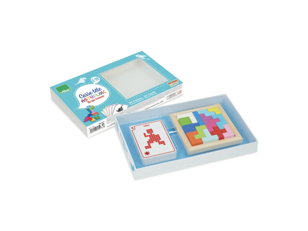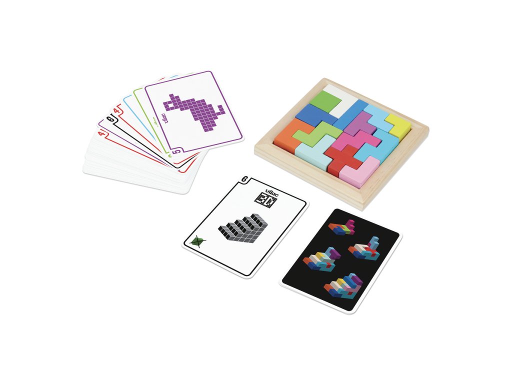 Krabice plná tangramů – hlavolamů v různým geometrických tvarech. V balení 50 různých kartiček s obrázky, podle kterých můžete stavět. Návody pro 2D i 3D stavění. Vyrobeno ze dřeva. Hlavní vlastnosti: rozvíjí prostorovou představivostobsahuje předlohy pro snazší i složitější skládáníDoplňkové parametry