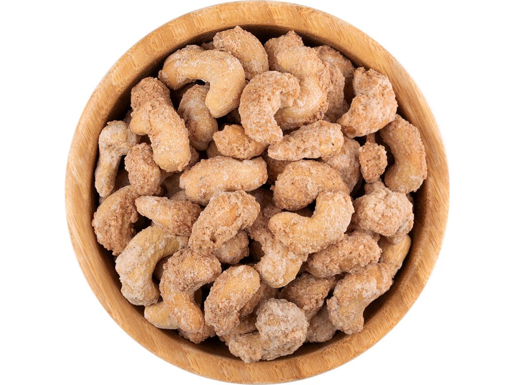 Kešu ořechy v cukru a skořici jsou lahodným spojením jemně nasládlé chuti kešu a voňavého koření. Pečlivě vybrané kešu ořechy jsou obalené v tenké vrstvě cukru a obohacené o skořici a vanilku, která jim dodává neodolatelné aroma i lehký hřejivý nádech.