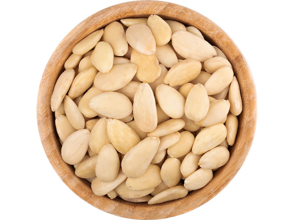 Blanšírované mandle bez slupky, 100% natural, nepražené a nesolené. Jemná chuť, hebká textura, ideální na zobání i jako součást Low Carb jídelníčku.