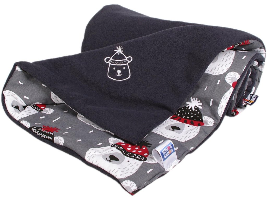 Zateplená dětská deka v provedení fleece, vatelín, bavlna. Barevnost šedá, motiv medvídci. Rozměr 70 x 100 cm. Praní na 30 °C. Česká výroba. Deka je vhodná do kočárku, do autosedačky i na doma.