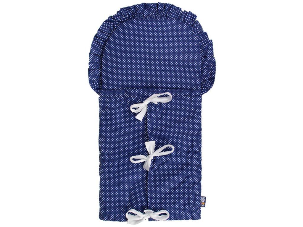 Potah klasické zavinovačky s trojitým vázáním v tmavomodré barvě s motivem bílých puntíků. K potahu je nutné dokoupit ještě výplň, aby byla zavinovačka kompletní. Doporučujeme pořídit dva, nebo tři potahy a jednu výplň. Povlak zavinovačky je ze 100% bavlny a lze ho prát v pračce na 40° C, velikost povlaku a tedy i zavinovačky je cca 115 x 33 cm. Zavinovačka je vhodná jako výbava do porodnice, protože novorozená miminka jsou zvyklá na těsný prostor maminčina bříška a po zavinutí se cítí bezpečně a rychle se zklidní.