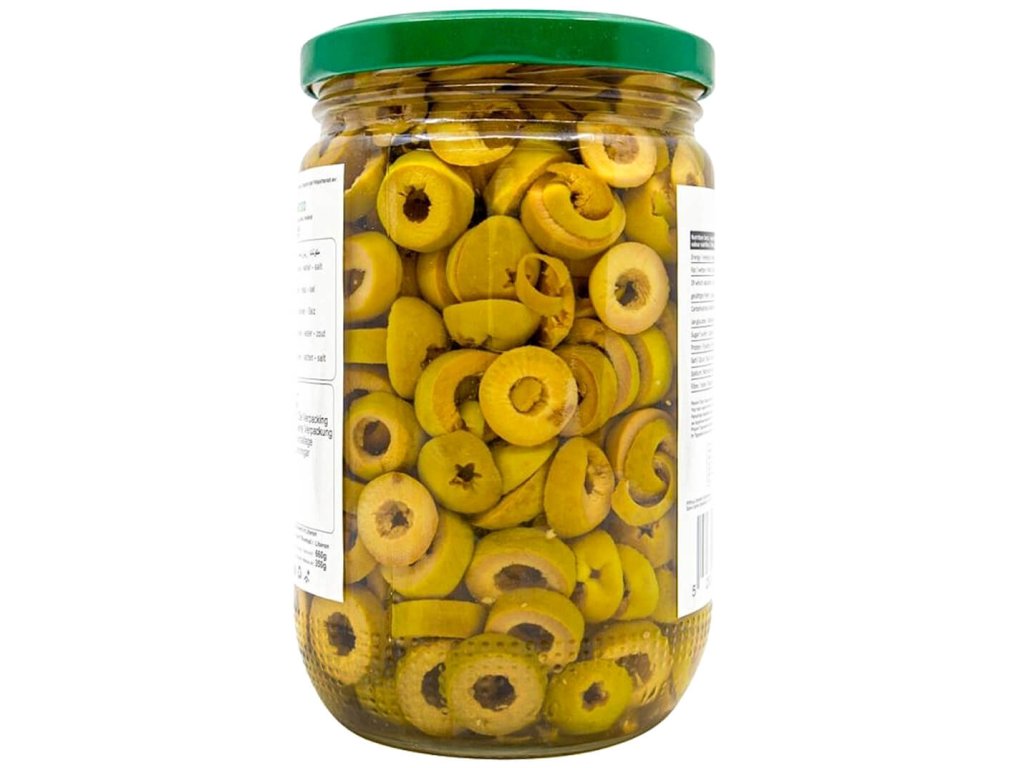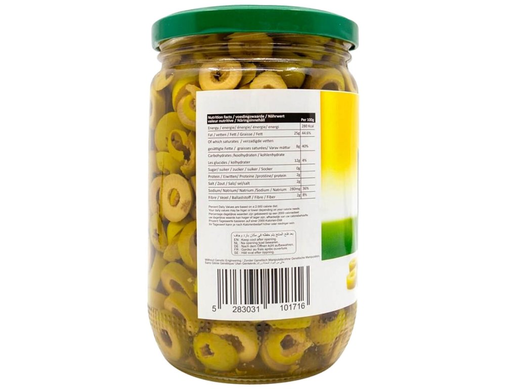 Olivy bez pecek nakrájené na plátky umožňují jednoduché a rychlé použití v široké škále jídel, jako je pizza, salát nebo jako příloha. Jediným složením nálevu je voda a špetka soli, takže si můžete být jisti, že neobsahuje žádné konzervanty nebo stabilizátory. Vyzkoušejte tyto vynikající nakrájené zelené olivy na plátky a užijte si skutečnou chuť Libanonu ve vaší kuchyni.